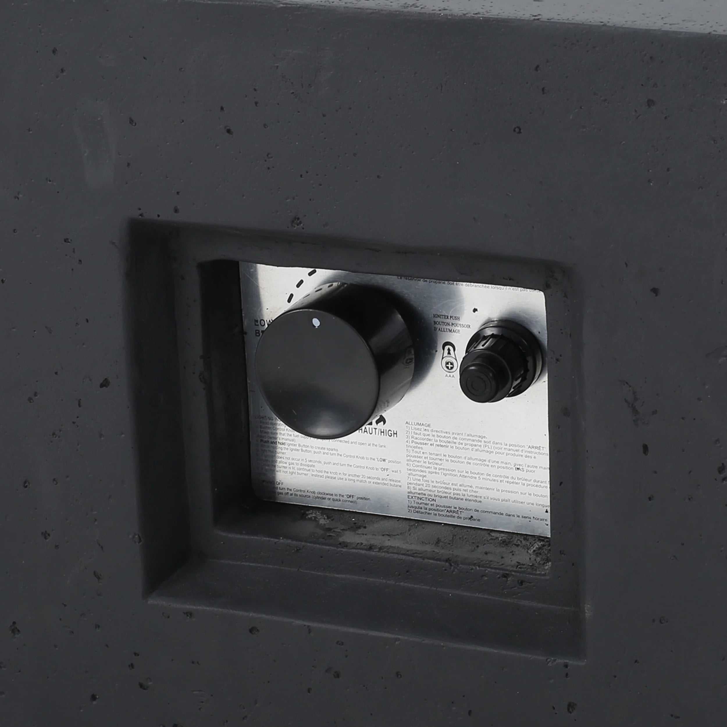 • Take in the view of warm, flickering flames against the night sky. With 50,000 BTU and clean, straight lines built from smooth lightweight concrete, our propane gas fire pit not only offers an incredible upgrade in style but is also perfect for parties due to its easy seating arrangement.