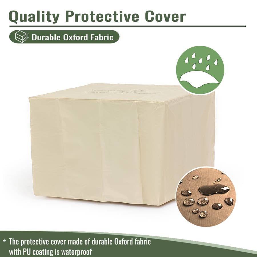• Space-Saving Versatility with Tank Cover:Designed for compact outdoor spaces, this 32-inch square fire pit table maximizes utility without sacrificing style. The included waterproof tank cover keeps the propane tank protected from the elements, while the durable rain shield ensures long-lasting use. Ideal for intimate gatherings, solo relaxation, or alfresco dining.
