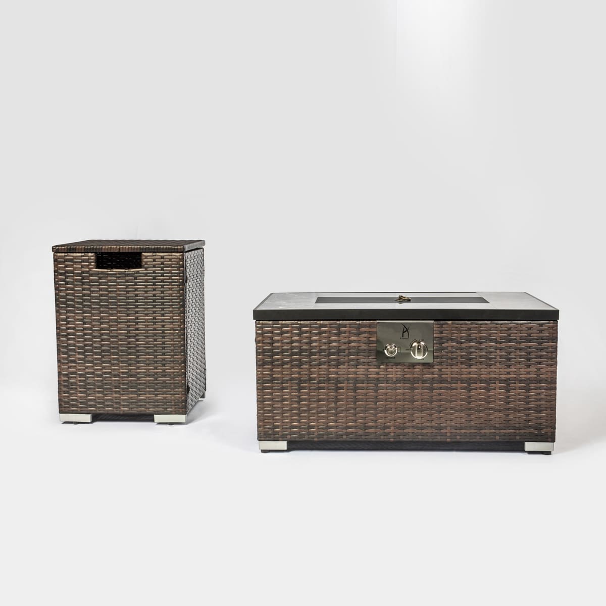 • Rattan Gas Fire Pit Table with Propane Tank Cover
