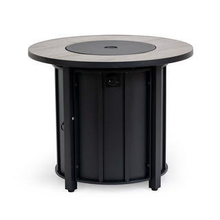 30" Propane Gas Fire Pit Table, 50000 BTU Round Steel Fire Pit with Wood Grain Ceramic Tabletop for Outside Patio Deck Garden Backyard- Black
