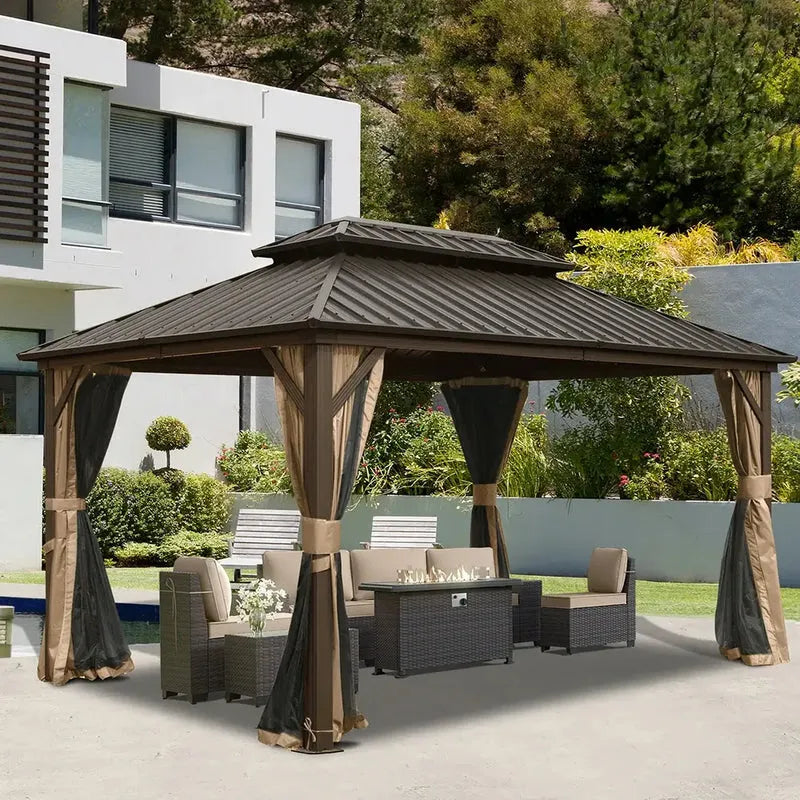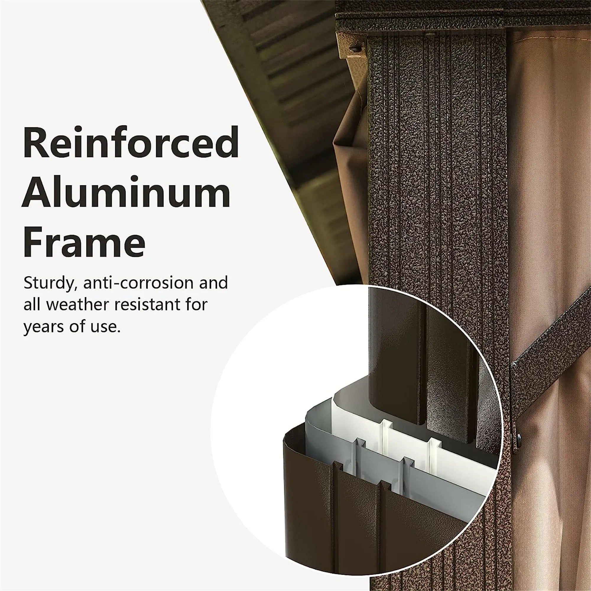 Aetherdome 10x12 FT Aluminum Hardtop Gazebo with Double Roof, Curtains & Netting