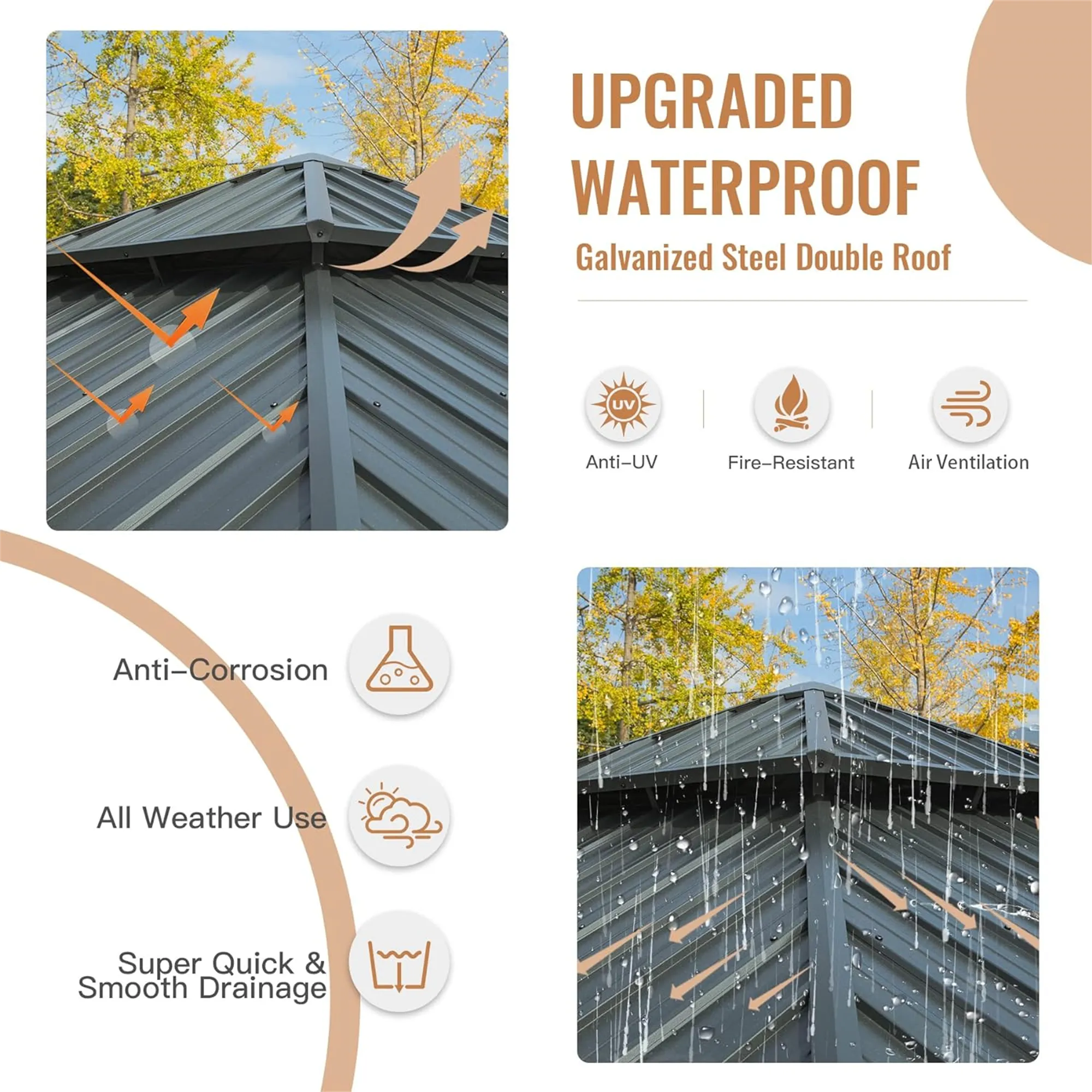 • Durable Premium Material- This hardtop gazebo pavilion made from durable materials such as aluminum and galvanized steel, can withstand harsh weather conditions such as rain, wind, and snow. It can also resist fading, rust, and corrosion, ensuring that it lasts for many years.