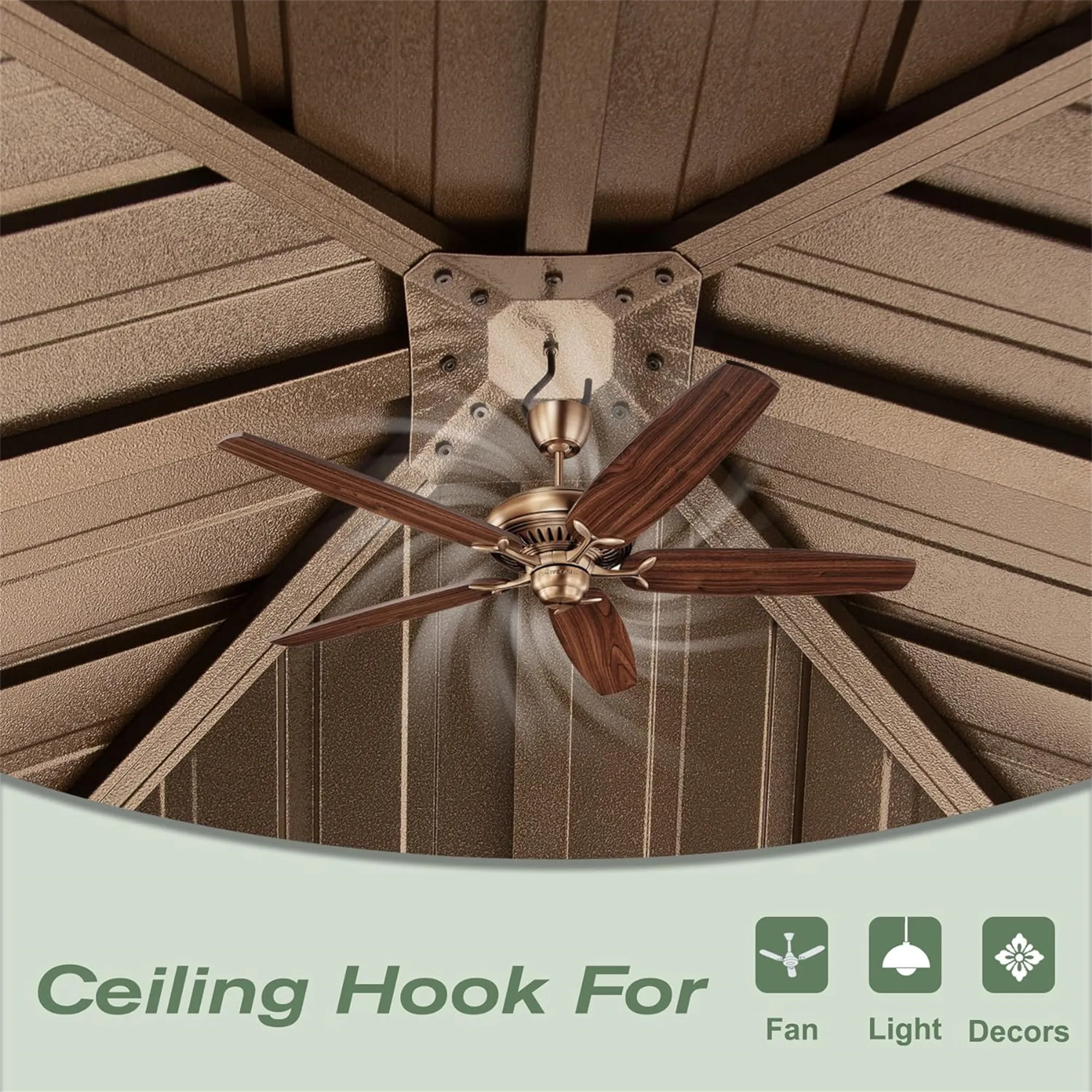 • Double Roof Design- The space between the two roof layers allows air to circulate, creating a ventilation system that helps keep the gazebo cool and comfortable even on hot summer days. Plus, the slope of the roof helps rain and snow to flow down and off the structure, reducing the risk of damage and ensuring a long-lasting, durable roof.
