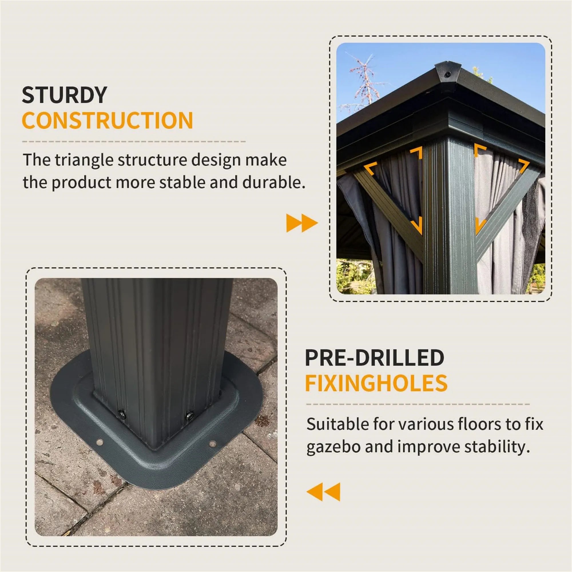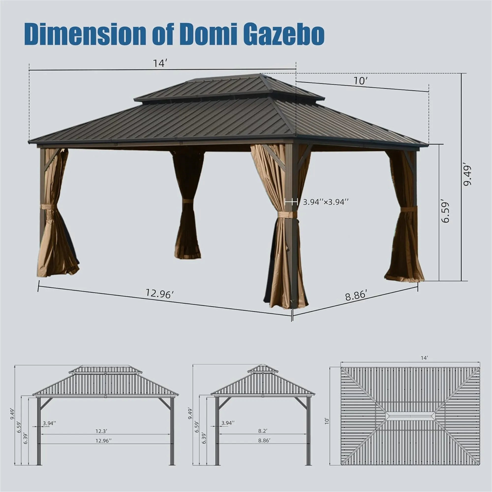 Aetherdome 10x14 FT Aluminum Hardtop Gazebo with Double Roof, Curtains & Netting
