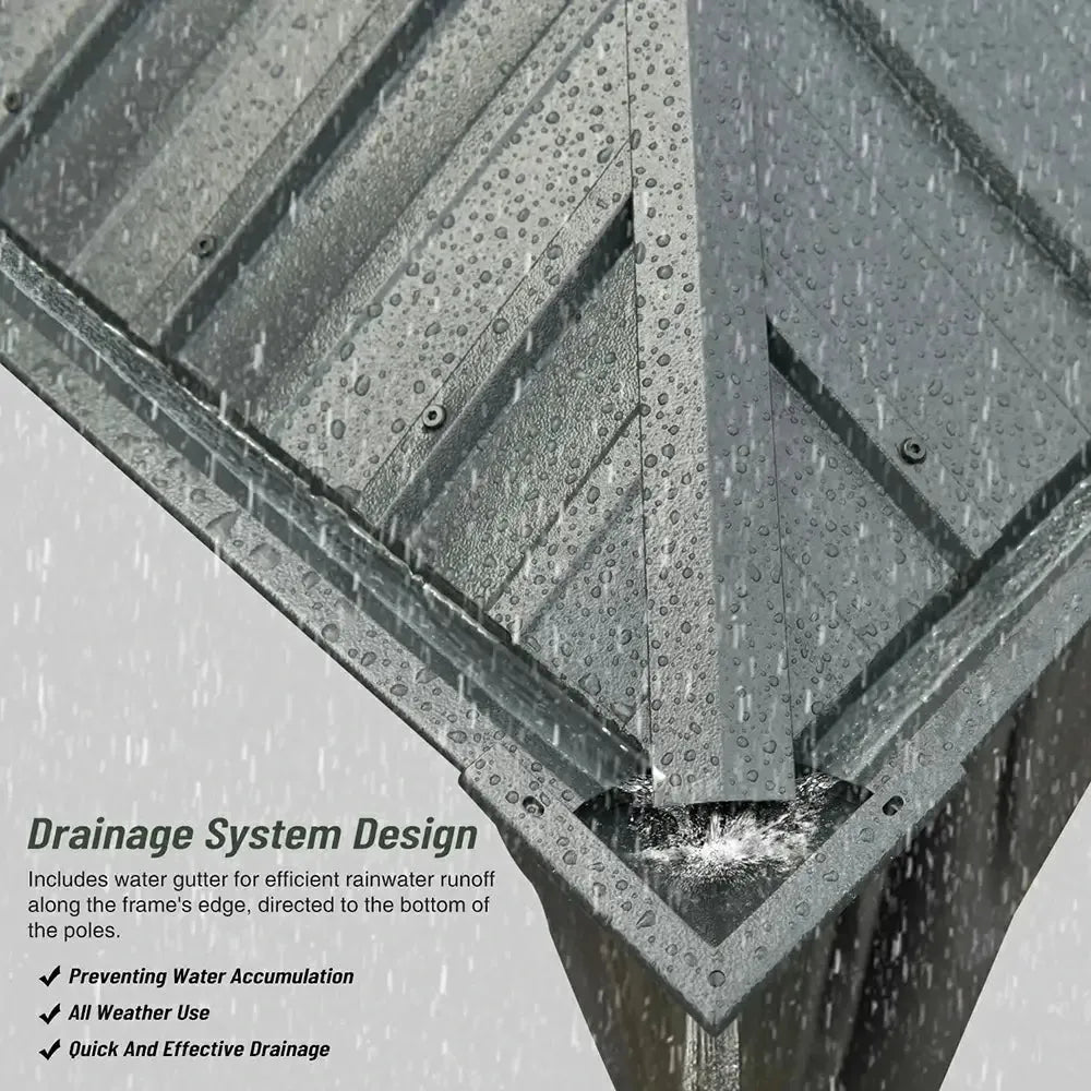 • Efficient Ventilation: The double roof design promotes airflow, keeping the gazebo cool and comfortable on hot summer days while facilitating rain and snow runoff for durability.