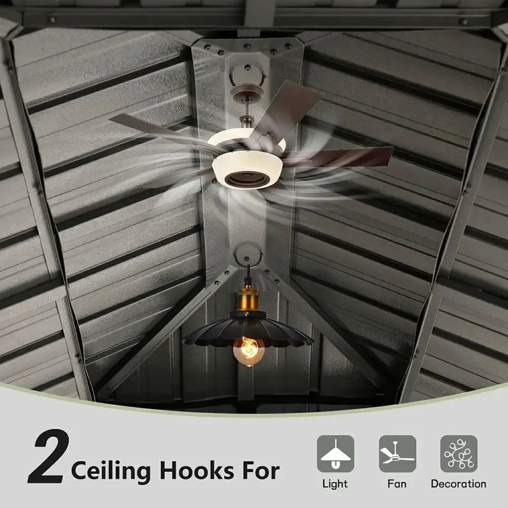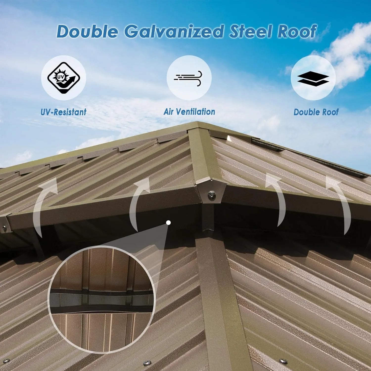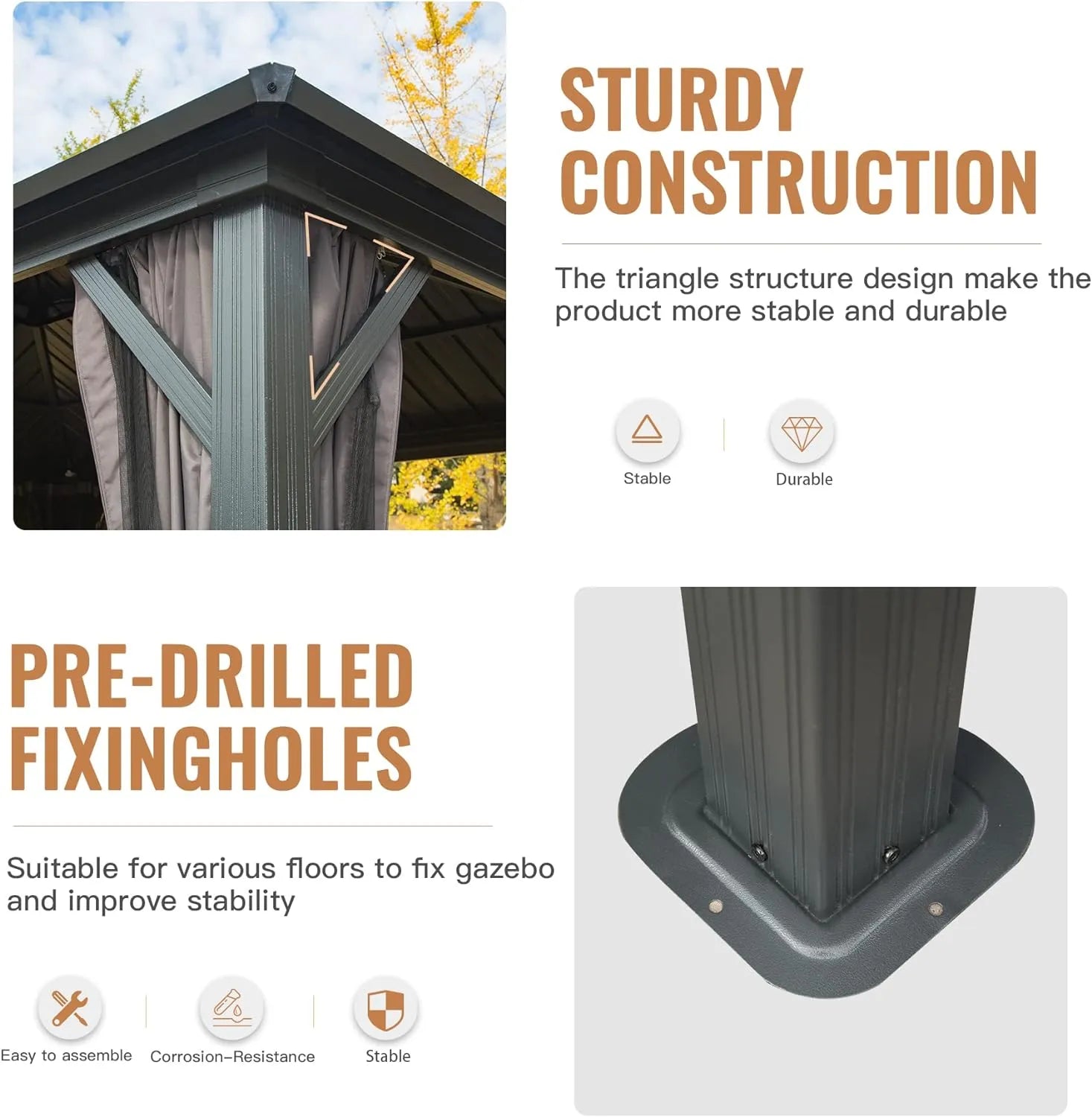 • Premium Durability: Crafted from aluminum and galvanized steel, this hardtop gazebo withstands harsh weather conditions, ensuring longevity and resistance to rust and corrosion.