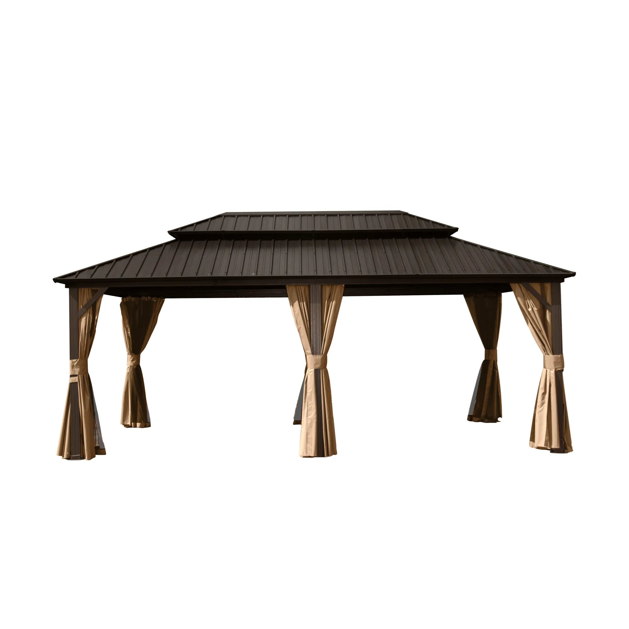 Aetherdome 12x20 FT Aluminum Hardtop Gazebo with Double Roof, Curtains & Netting