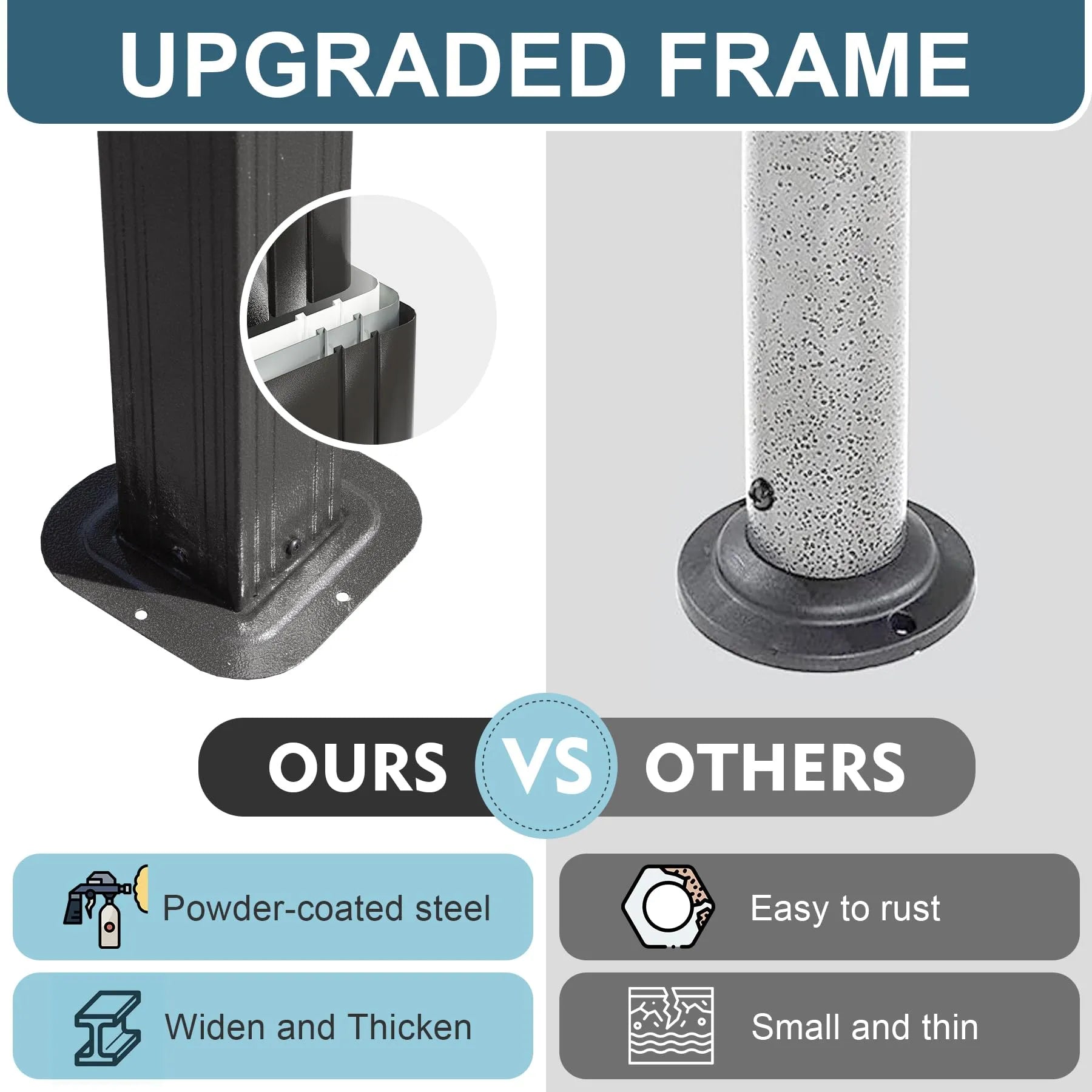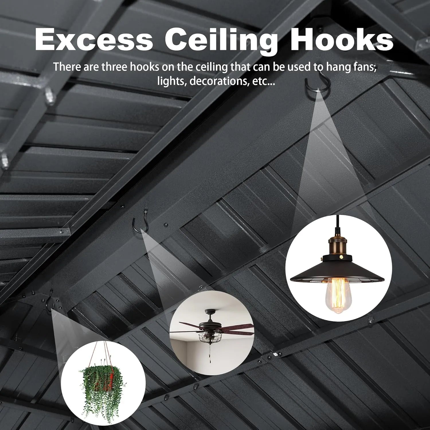 • Functional Ceiling Hooks- The 6.5'x12' gazebo includes four ceiling hooks perfect for hanging cooking utensils, lights, or decorations, maintaining a tidy area and ensuring your most-used items are always accessible while using this grill gazebo.