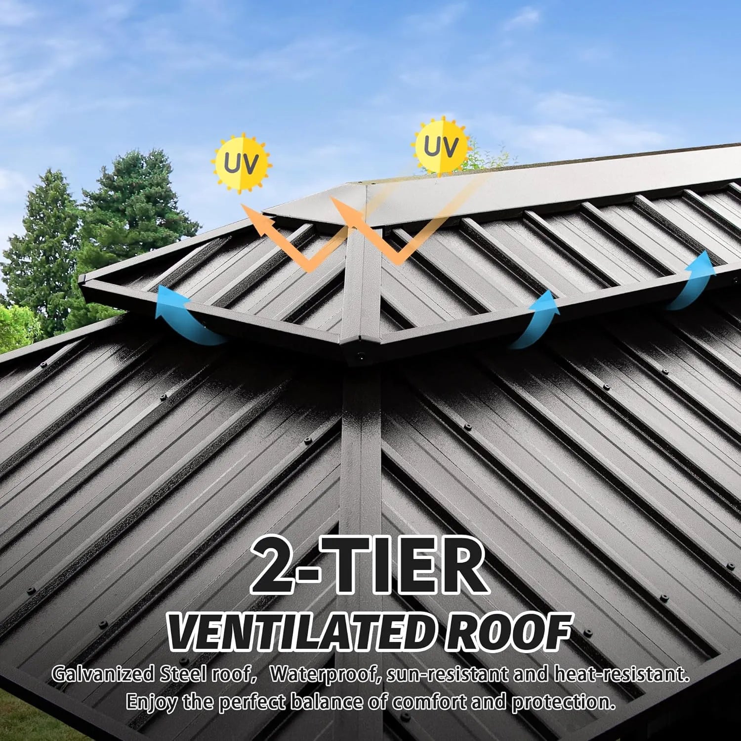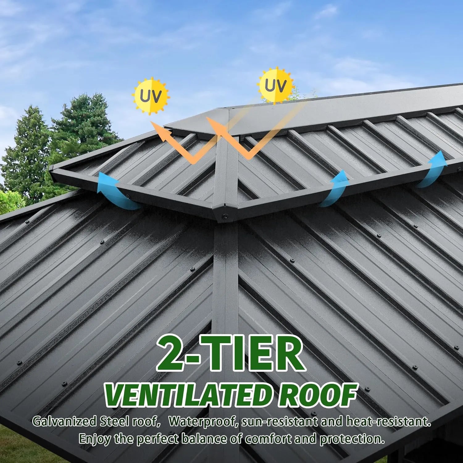 • Easy Assembly Process- This hardtop gazebo includes detailed instructions and all the necessary tools for a seamless setup. For the best results, it’s recommended that two to three people work together to assemble this metal gazebo quickly and efficiently.