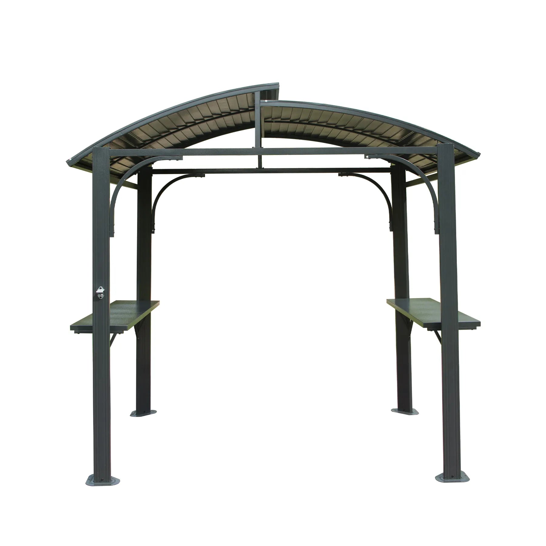 Hardtop Grill Outdoor BBQ Gazebo with 2 Side Shelves and Sloping Galvanized Steel Roof, Metal Permanent Grill Canopy with Ceiling Hooks