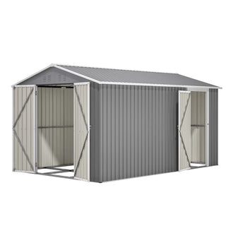 10X12 FT Metal Outdoor Storage Shed with Floor Frame Kit – Heavy-Duty Steel Garden Tool Shed