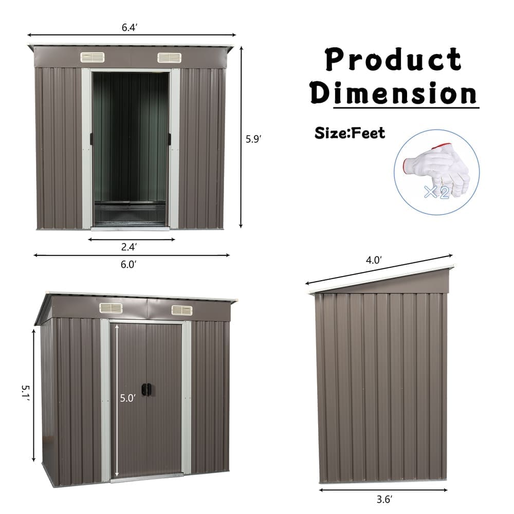 6X4 FT Outdoor Metal Storage Shed with Floor Base, Weatherproof Garden Tool Organizer