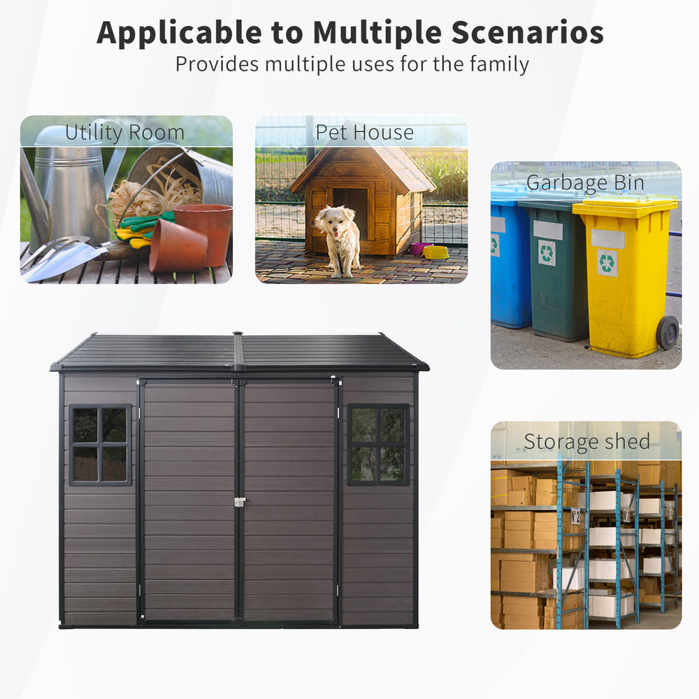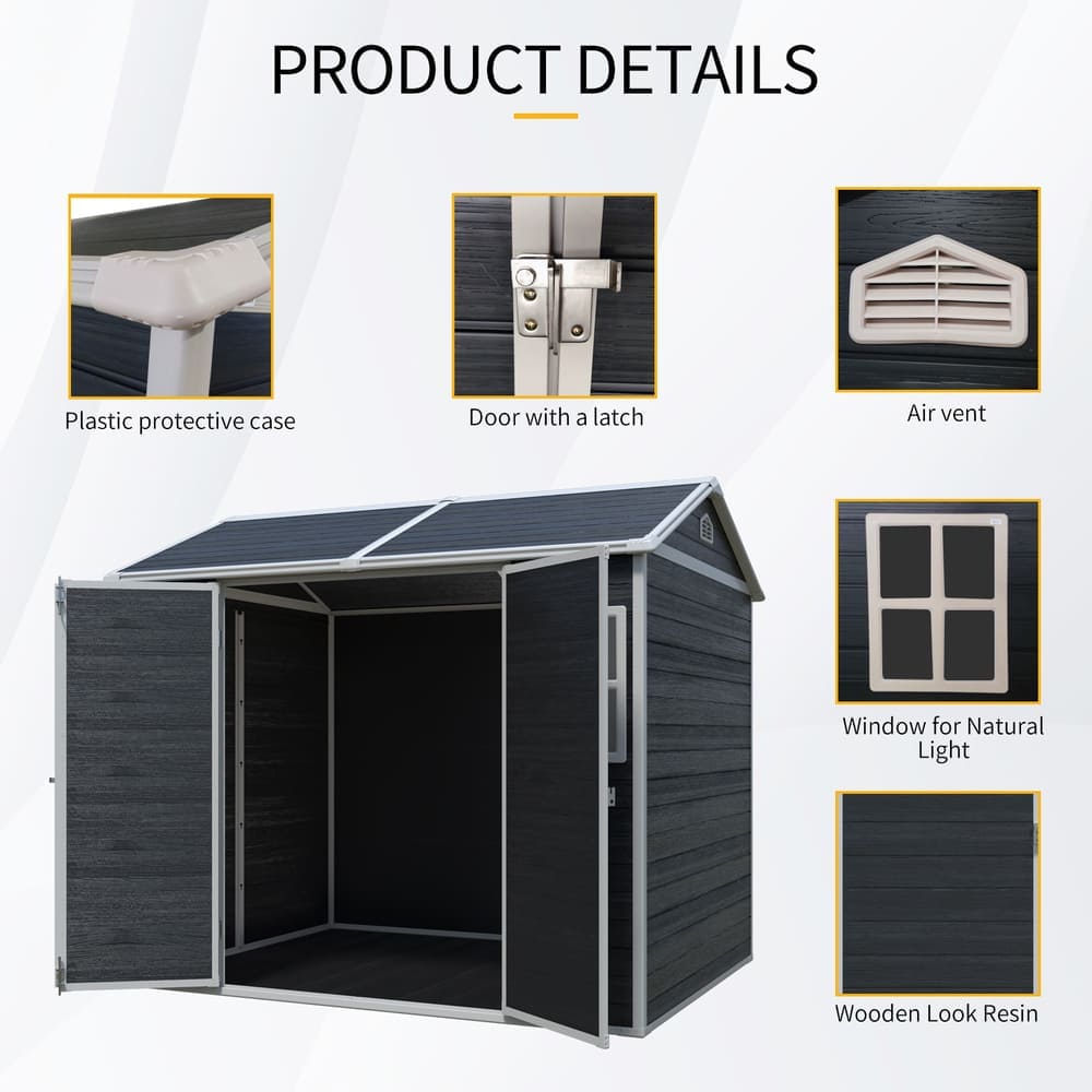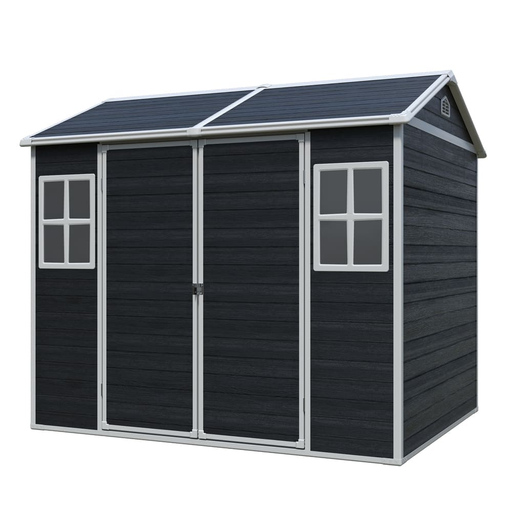 8 x 6 ft Resin Outdoor Storage Shed Waterproof Shed with Floor & Two Windows & Lockable Door, Tool Shed for Garden, Patio, Backyard,Grey/Black/White+Gray/Brown