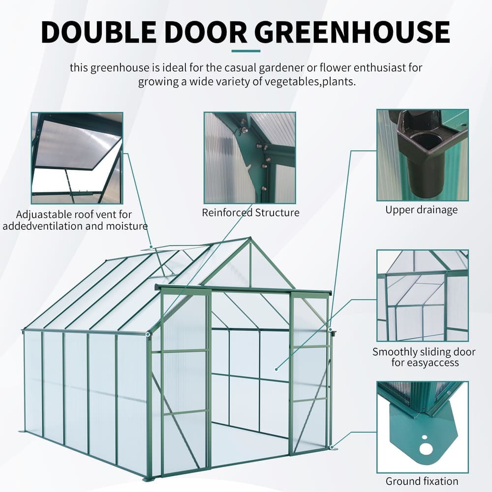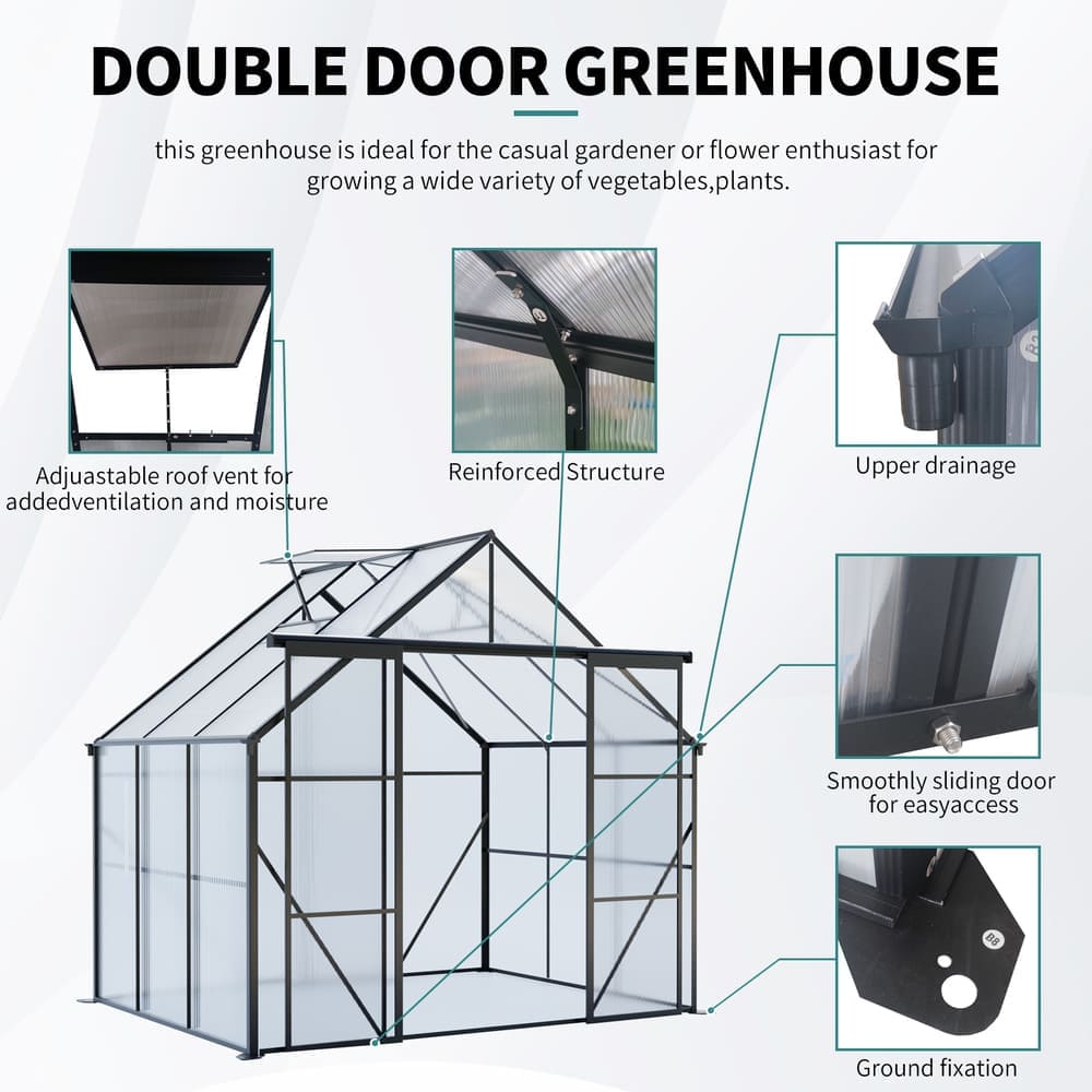 Double Door Polycarbonate Greenhouse Raised Base and Anchor Aluminum Heavy Duty Walk-in Greenhouses for Outdoor Backyard in All Season