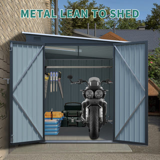 6x8FT Galvanized Steel Outdoor Storage Shed with Lockable Double Doors, Metal Lean to Shed with Free PC Light Board for Tools, Bikes & Patio Essential