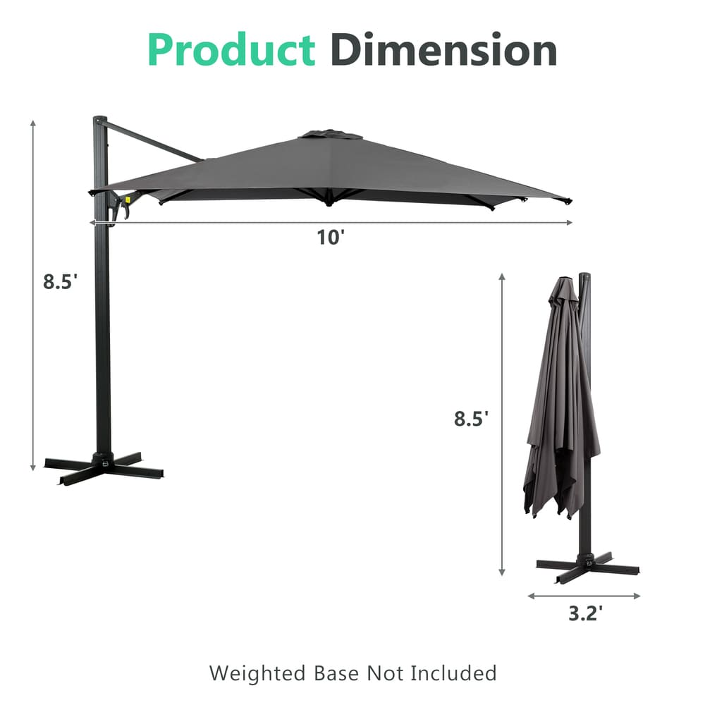 10 FT Cantilever Patio Umbrella with 360° Rotation & Tilt Adjustment, Square Outdoor Offset Umbrella with Aluminum Pole without base