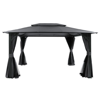 10X14 FT Outdoor Gazebo With Double Roofs, Privacy Curtains, Mosquito Nettings, Heavy Duty Metal Frame Party Tent Canopy