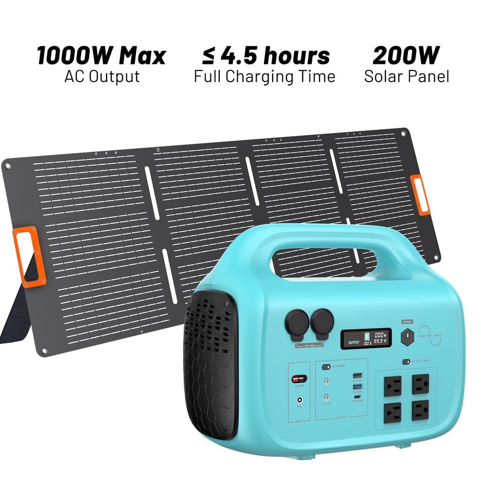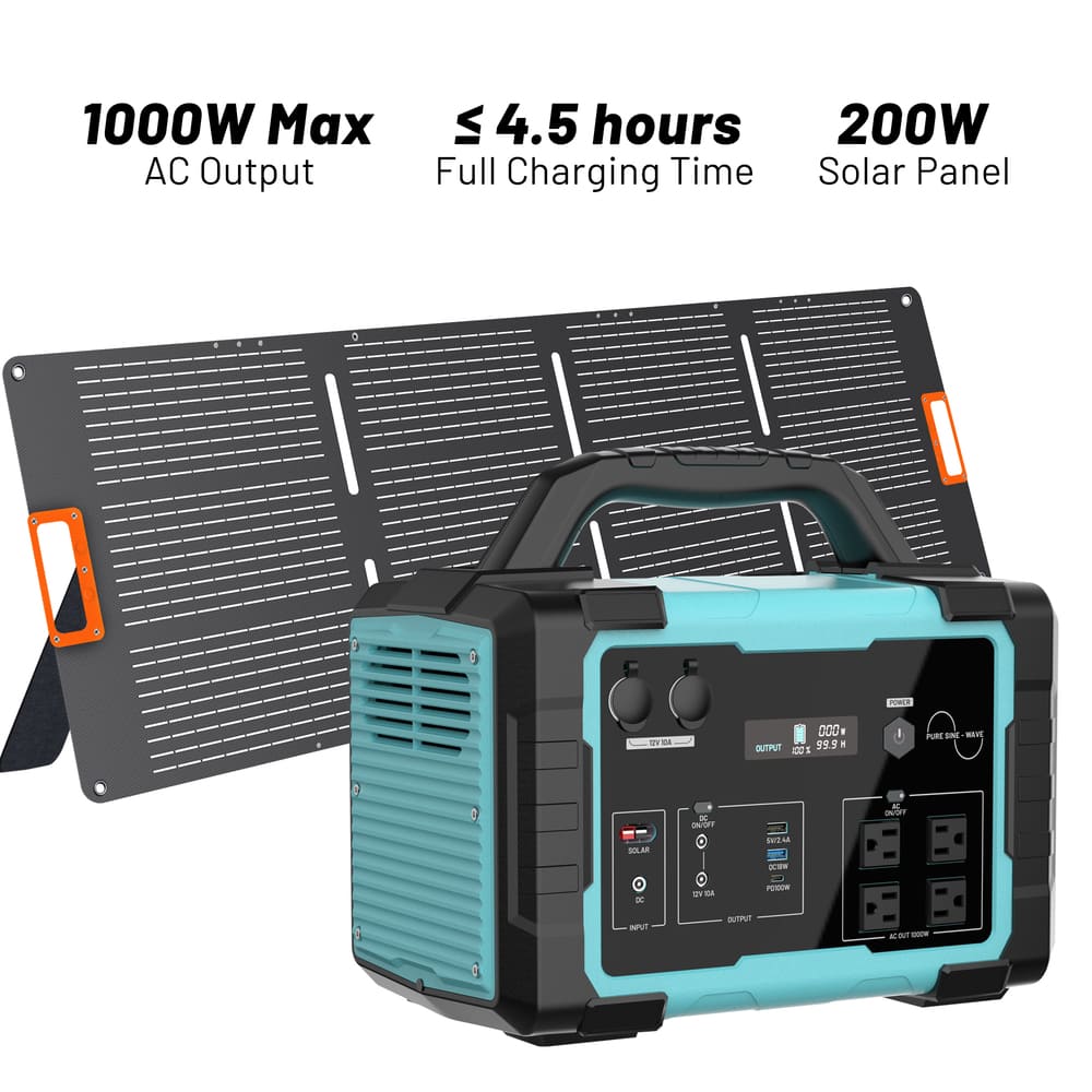 1000W Portable Power Station 1024Wh Solar Generator with AC Outlets for Home Backup, Camping & Emergencies
