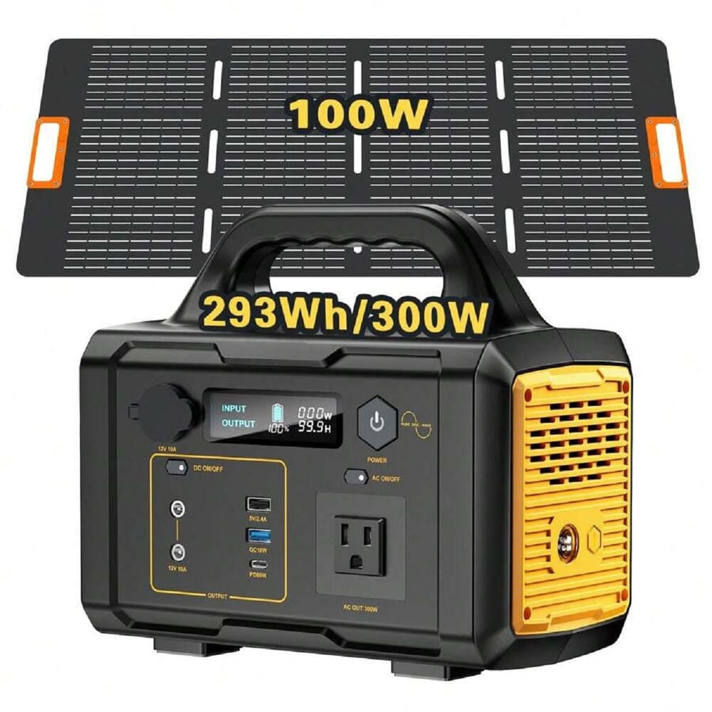 300W/1000W Portable Power Station with 100W/200W Solar Panel for Outdoor Camping, Home Backup & Emergency Use