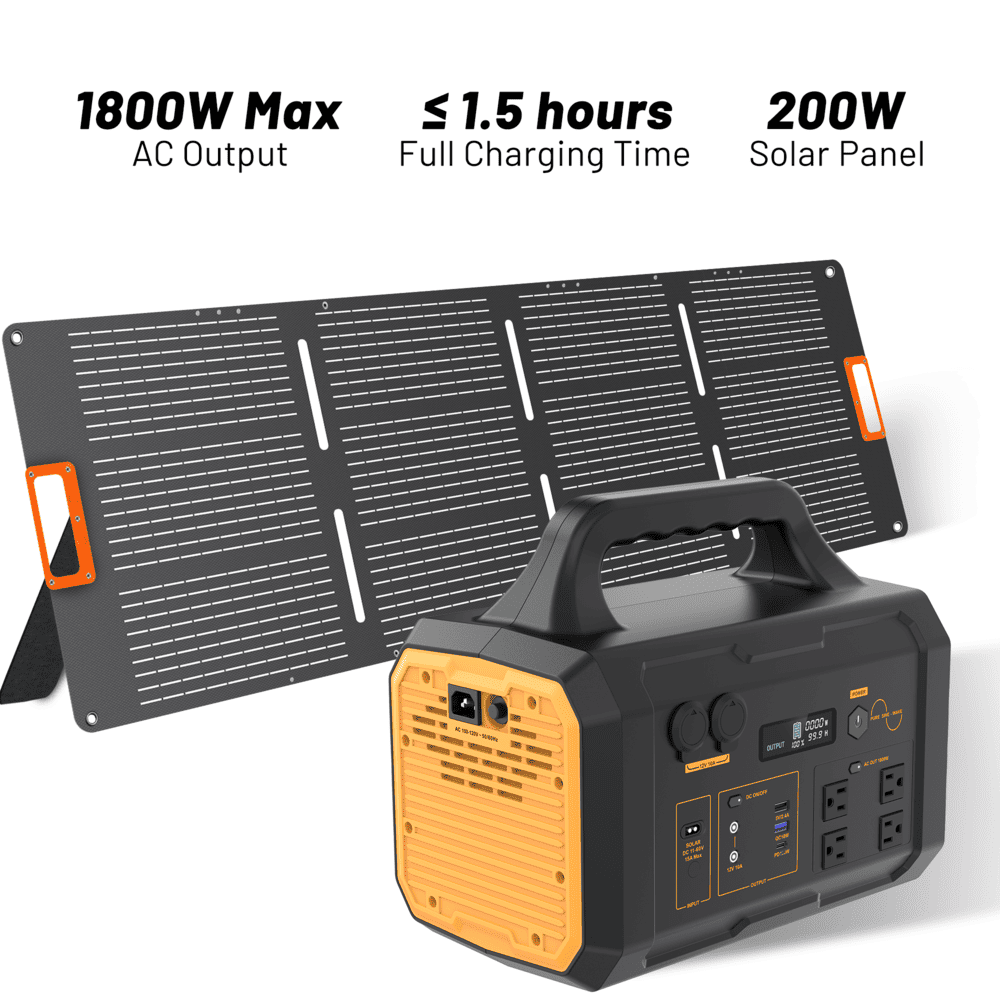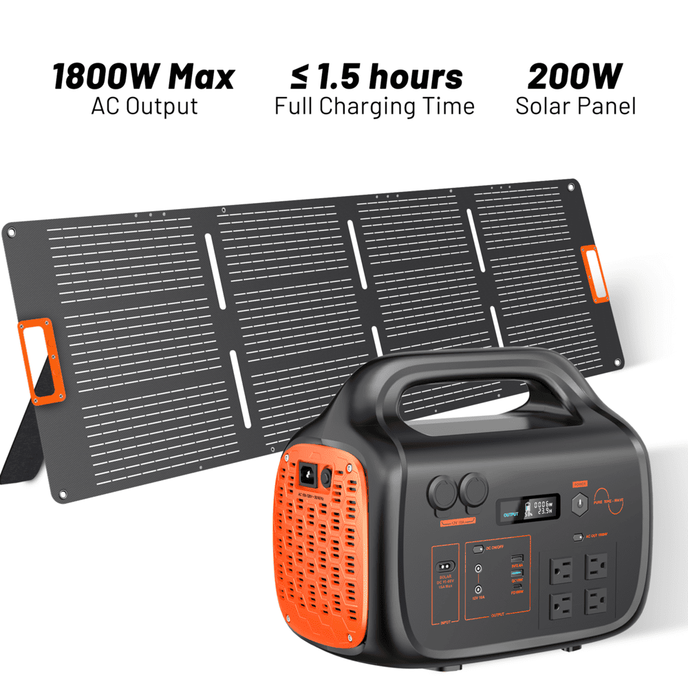 1800W Portable Power Station and 200W Foldable Solar Panel Kit 1024Wh Battery Pure Sine Wave ETL and FCC Certified
