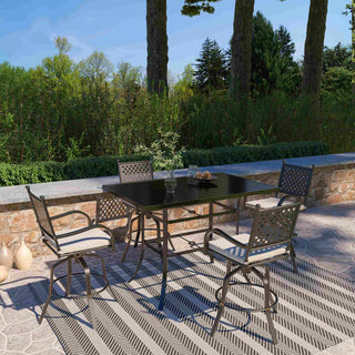 5-Piece Outdoor Cast Aluminum Dining Set – Black Swivel Chairs & Table for Patio