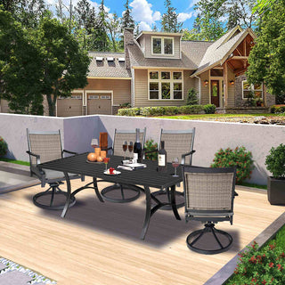 5-Piece Mondawe Outdoor Textilene Aluminum Swivel Chair Dining Set and Rectangular Table
