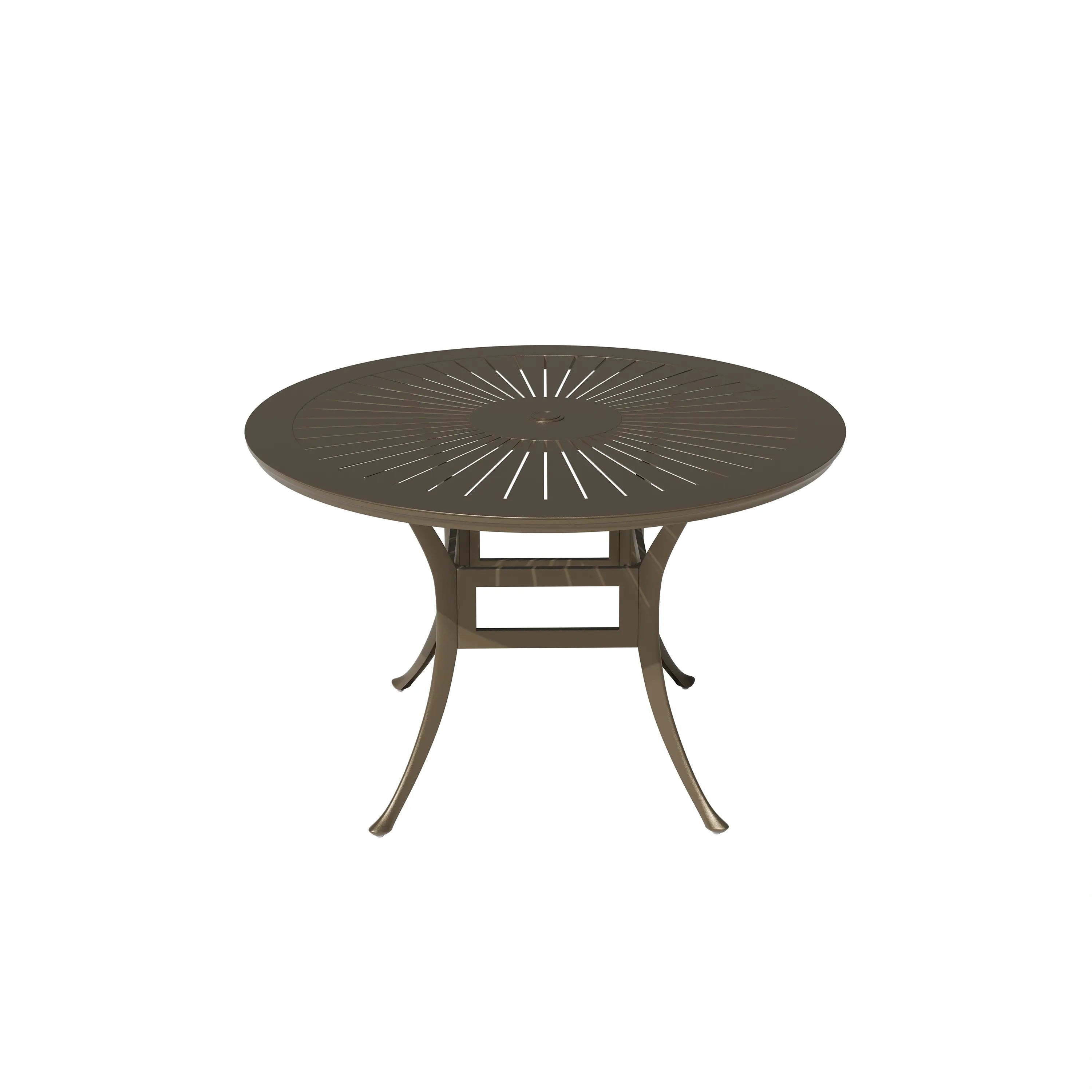 Relax and enjoy a meal under the stars with the round 48" Dining Table. Crafted from sturdy cast-aluminum with a powder-coated finish, this dining table features an intricate design on its 48" tabletop with an umbrella hole. Sure to be a focal point this table can be paired with chairs or join an eclectic mix of furniture on your patio or deck.