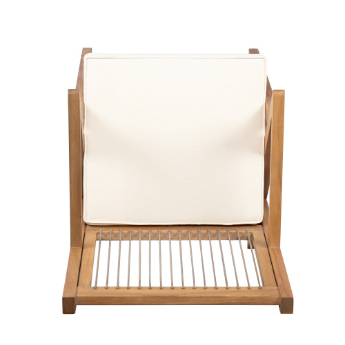 • SOLID ACACIA WOOD FRAME: Built from dense, durable acacia wood, this set is naturally resistant to outdoor elements. Its teak-like finish offers a sleek, exotic look that won’t darken over time, ensuring long-lasting beauty and structural integrity in any outdoor setting