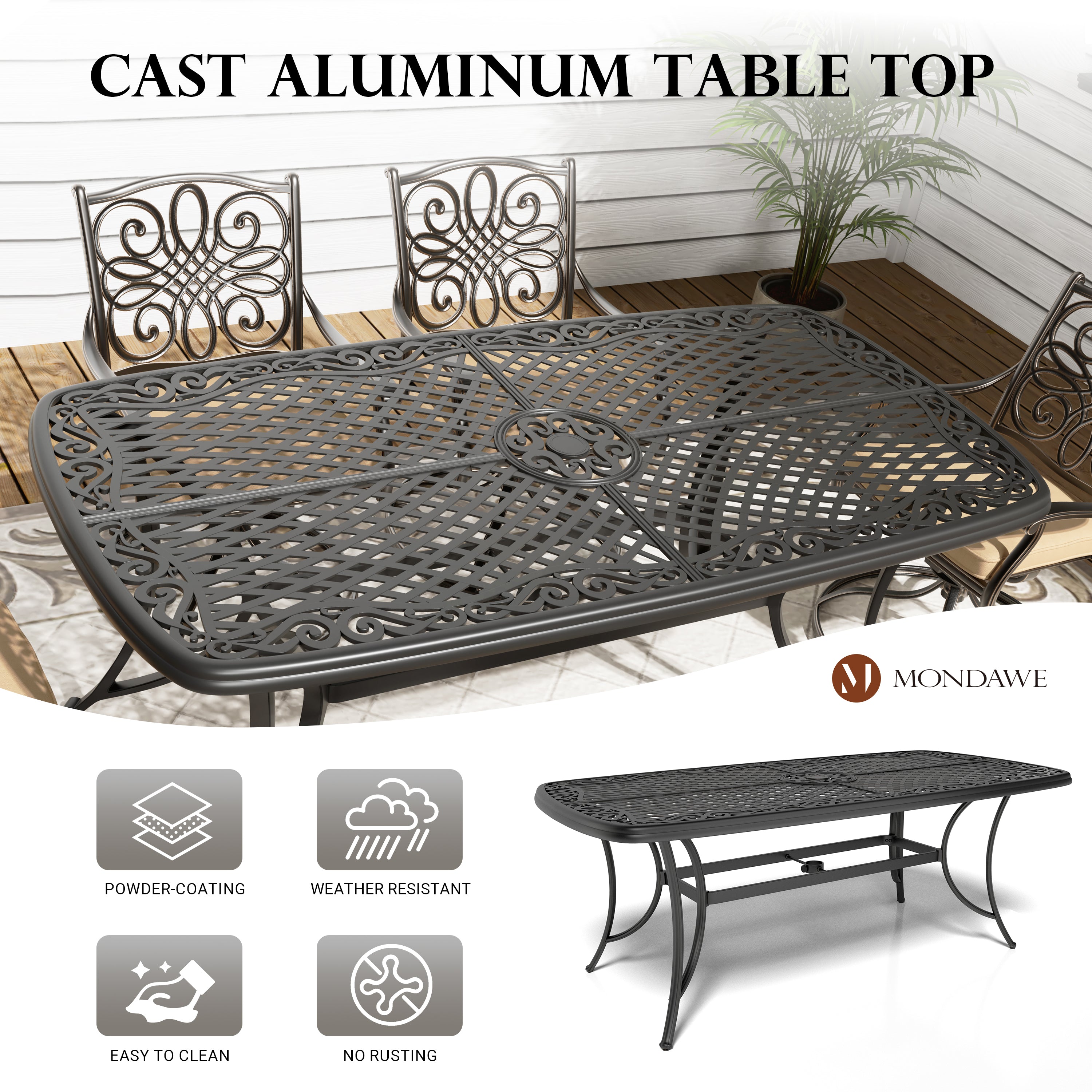 • Rectangle round cast aluminum table resists rust and corrosion, it can weather the harshest weather conditions.