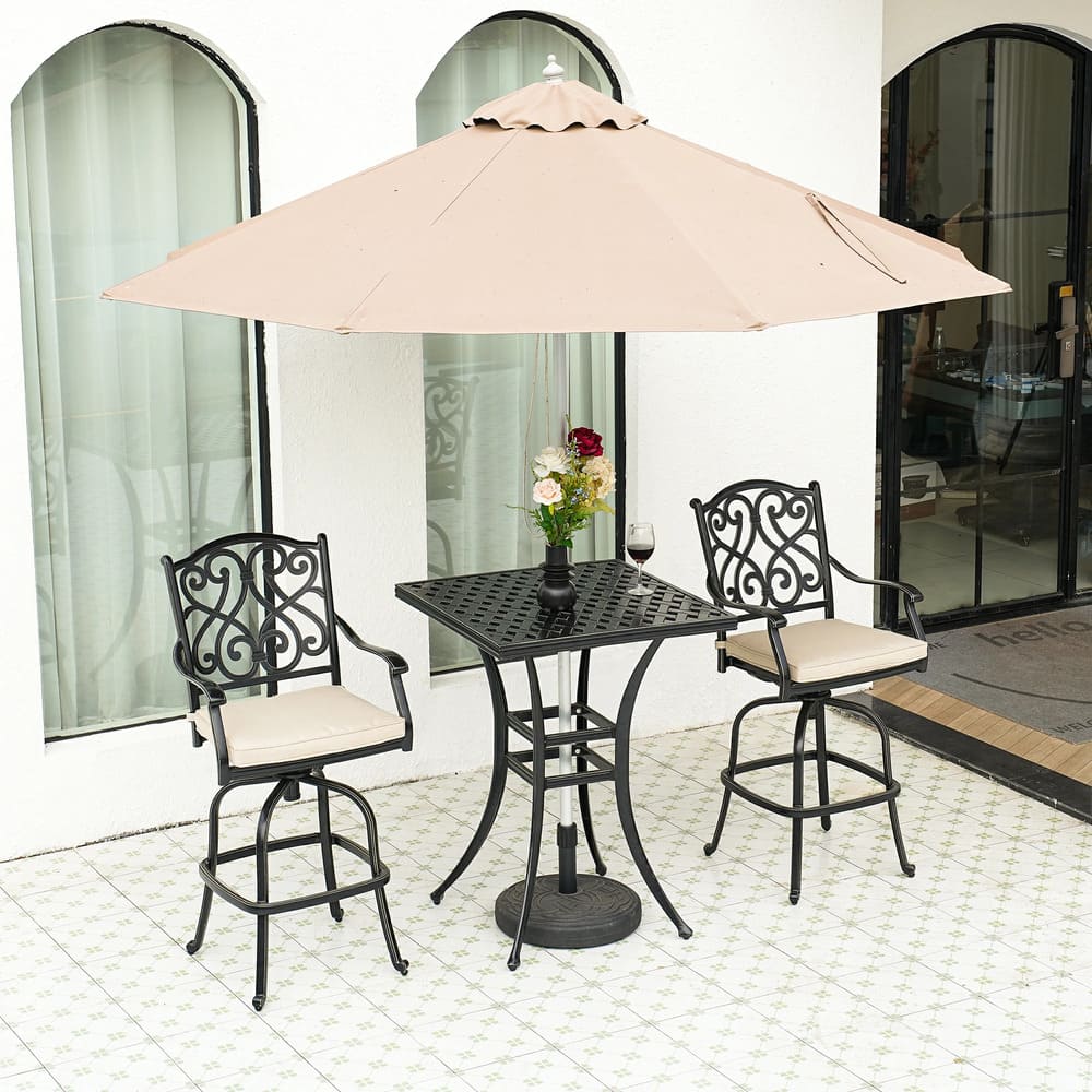 About This Product Square Outdoor Table Bar Stool 29-in W x 29-in L with Umbrella Hole