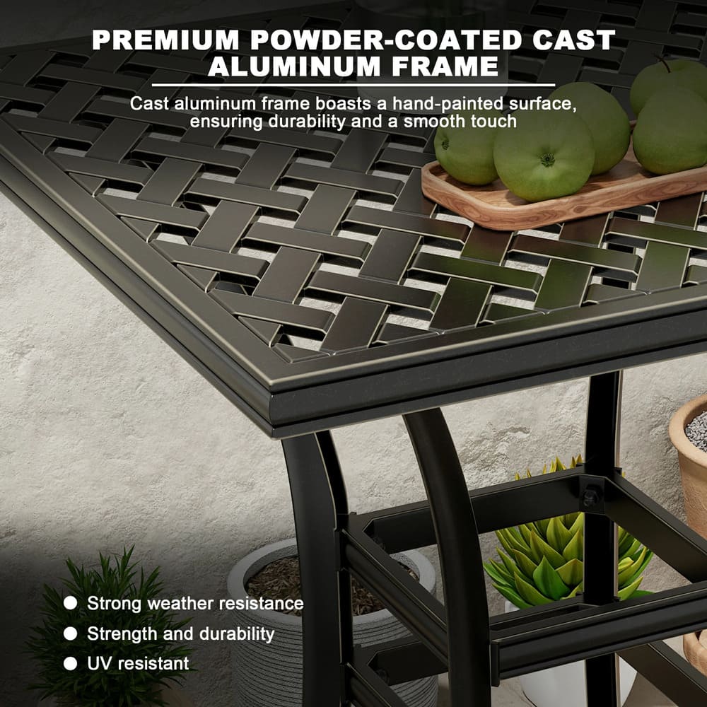 2. Exceptional Durability: Crafted from premium cast aluminum and hand-painted for a smooth finish, this table is built to withstand the elements, ensuring years of reliable use for generations to come.