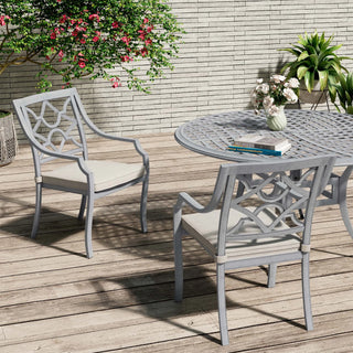Outdoor Cast Aluminum Dining Armchair with Weather-Resistant Cushion