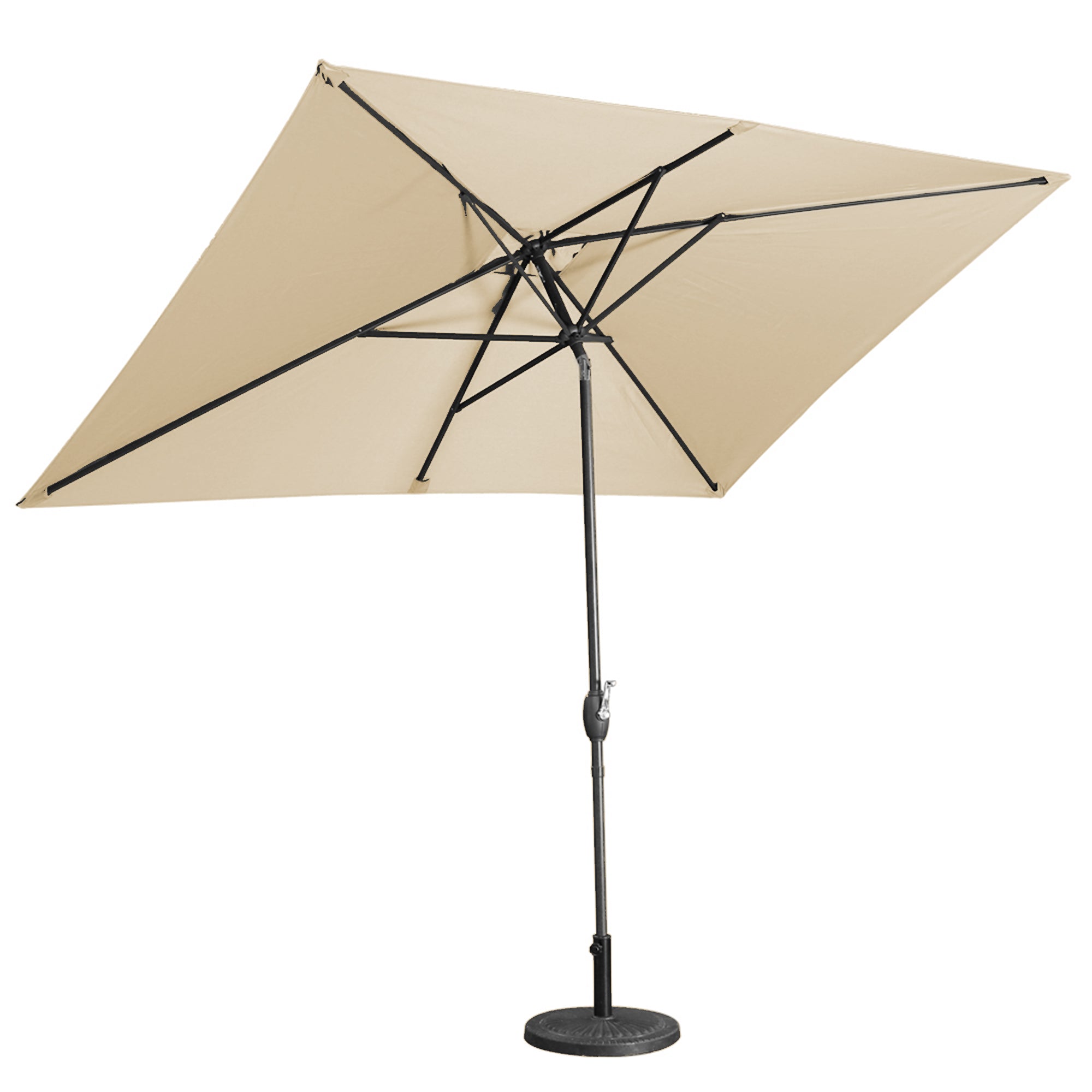 • Deluxe Aluminum Tilt Rectangular Market Patio Umbrella, 6 steel rib construction, Enjoy the sunshine and scenery while keeping cool with this 10 ft. Patio Umbrella. Designed with style and durability in mind, this piece is built with an aluminum frame. The 200g fabric blocks up to 100% of UV rays to keep yourself safe while being fade-resistant and water-resistant.