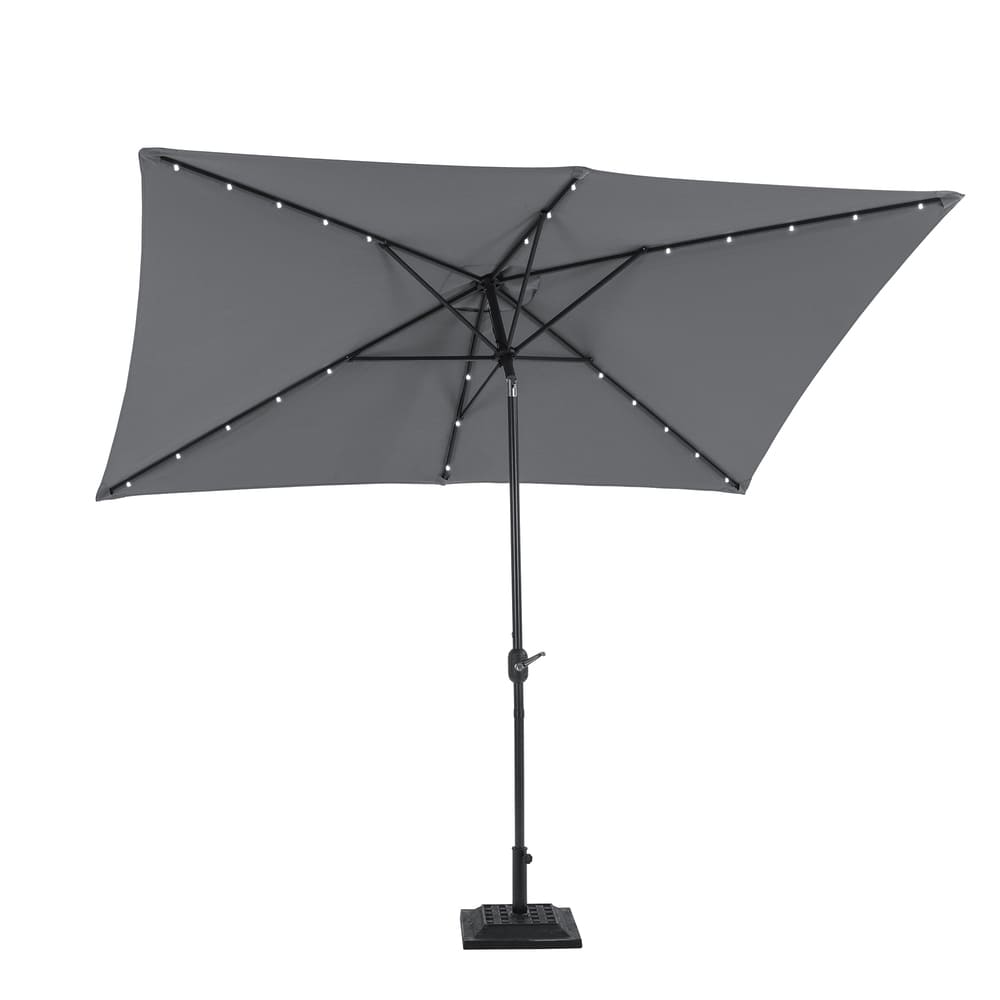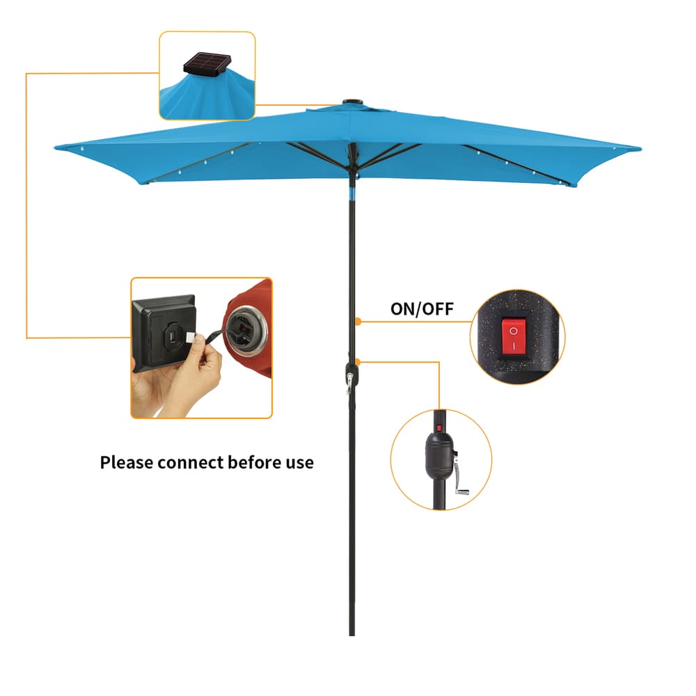 10Ft Outdoor Rectangular Umbrella with 26 Solar-Powered LED Lights, Crank and Tilt