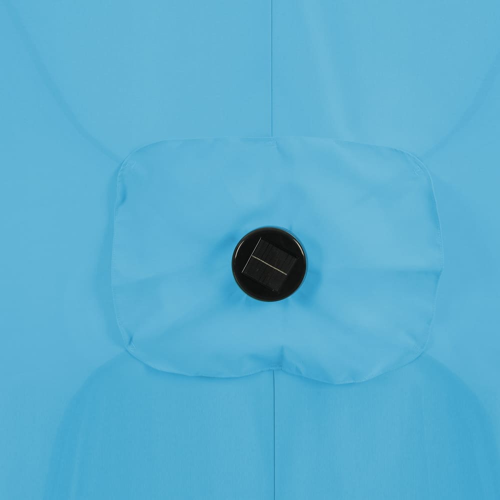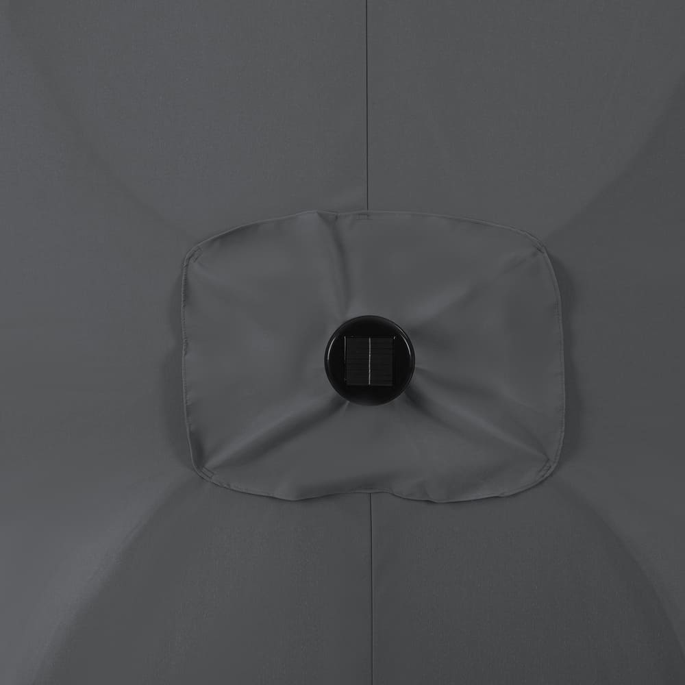Made of solid and durable iron and aluminum parts, this outdoor offset umbrella can adapt to the harsh outdoor climate. 26 LED Rib Lights and a central hub light powered by solar rechargeable batteries provide ambient mood lighting. It's perfect for gardens, balconies, decks, swimming pools, or cafes.