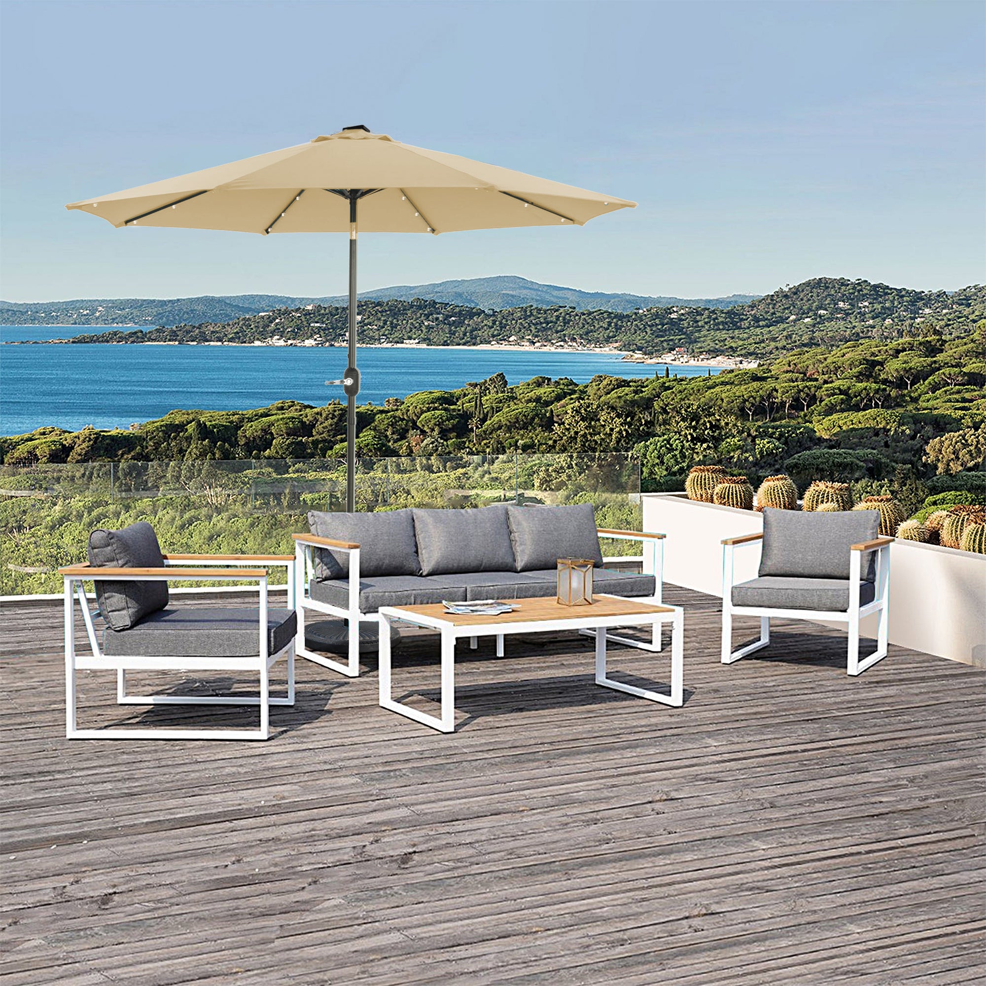 9-ft Aluminum Navy/ Lake Blue/ Tan/ Red Crank Market Patio Umbrella with Lights