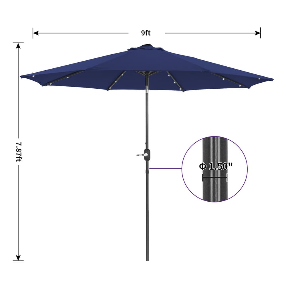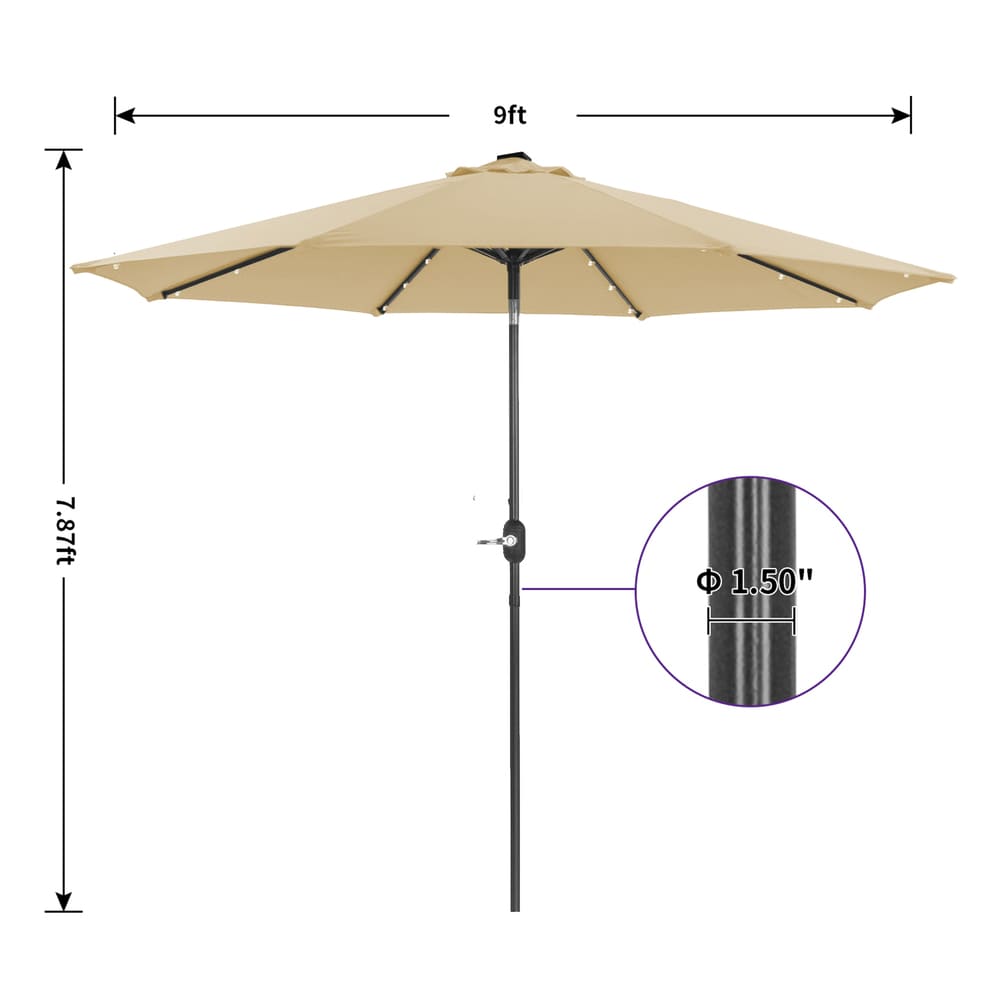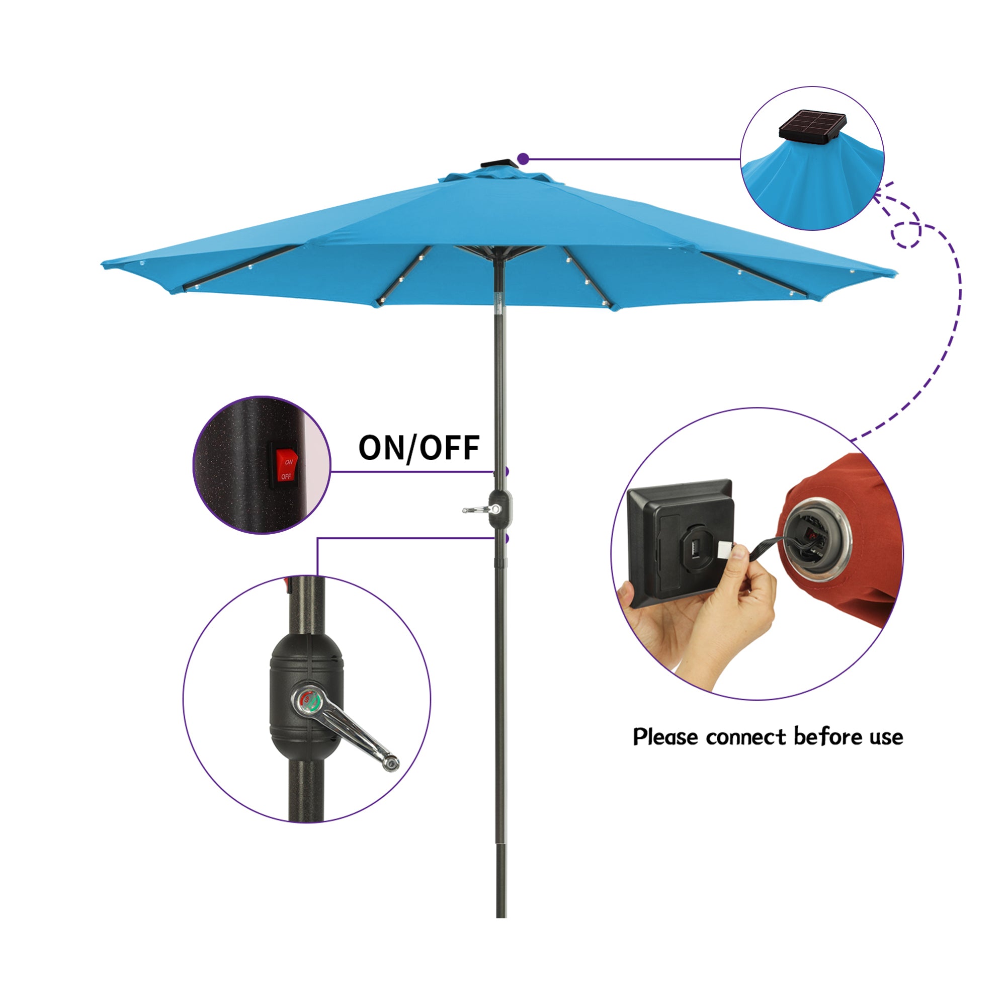 • LED lighted solar umbrella: 4 LED lights on each rib, 8 steel rib construction, on and off switch for umbrella solar light, enjoy the time with your families or friends whenever in daylight or at night, with re-chargeable and changeable battery