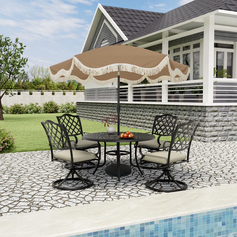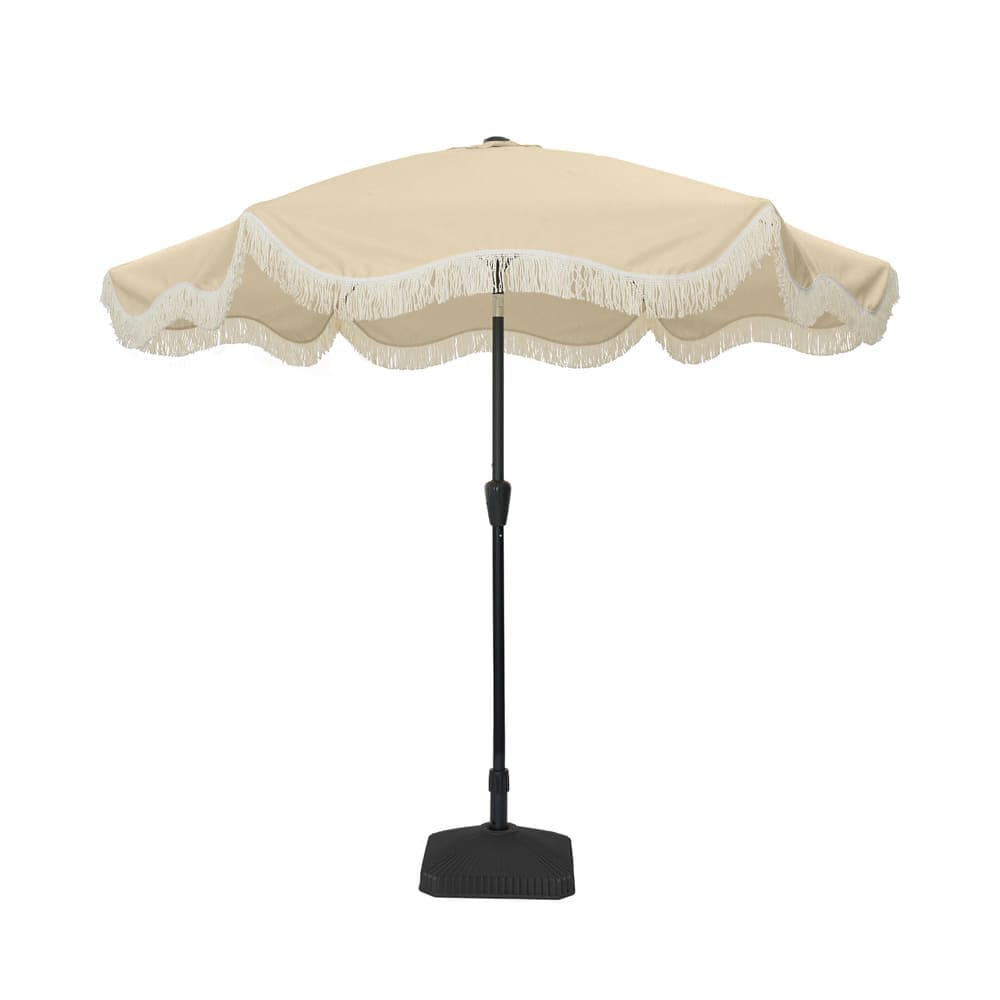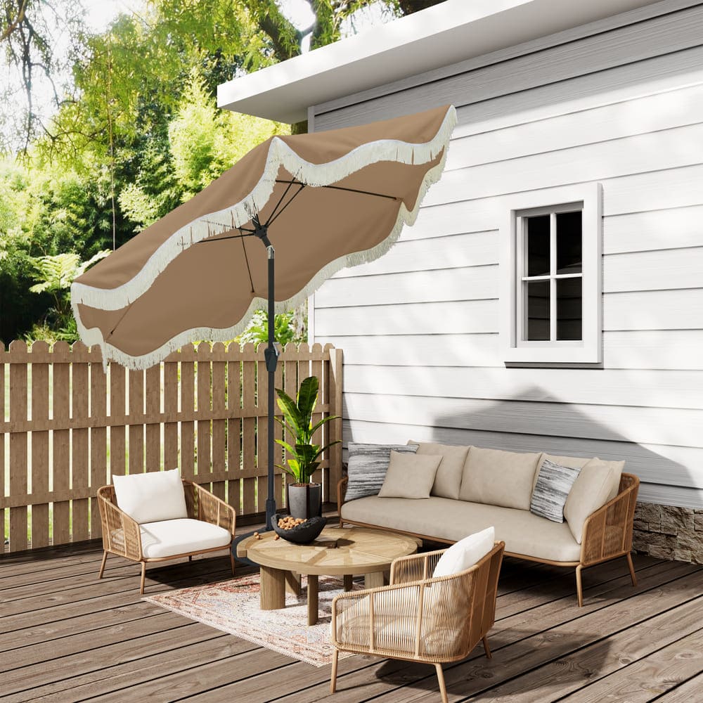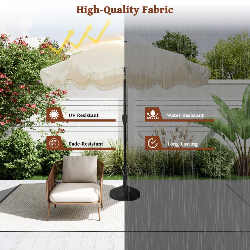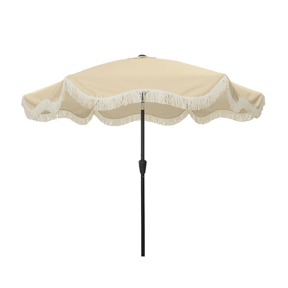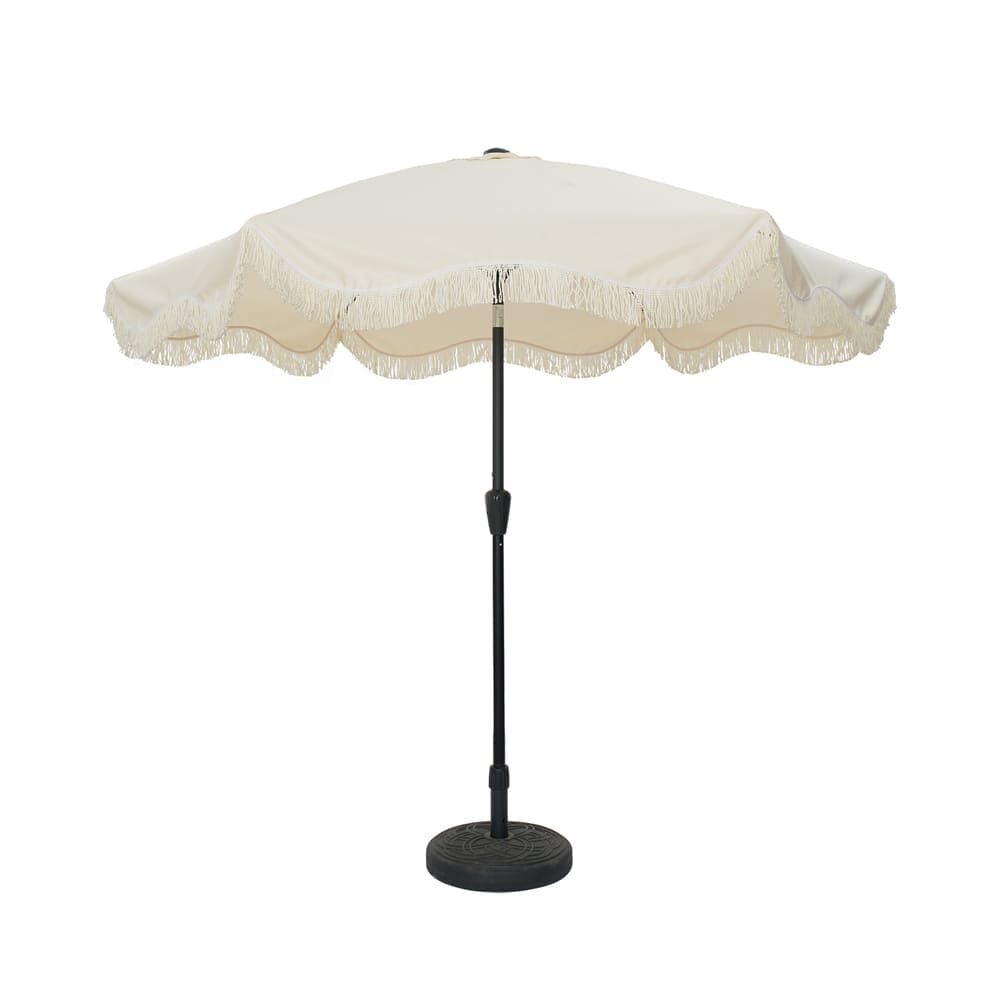 9 FT Tassel Market Patio Umbrella with Full Fiberglass Rib in Cream/Beige/Tan