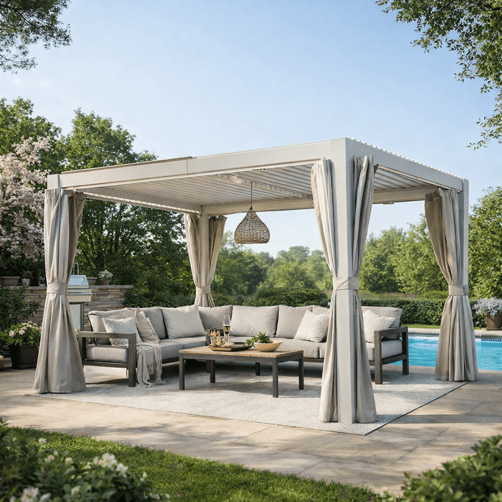 • Dual Adjustable Louver Roof, Control Your Shade: Customize your comfort with two independent sets of aluminum louvers that tilt from 0° to 90°. Easily regulate sunlight, ventilation, and privacy to suit your mood or weather conditions