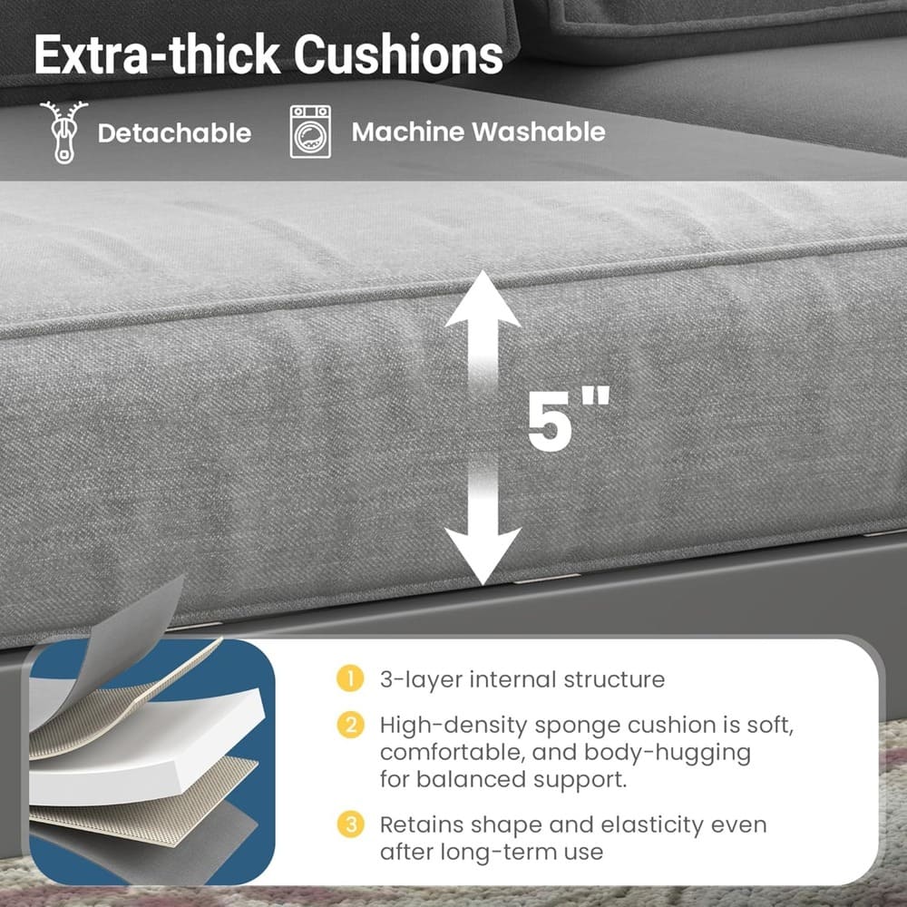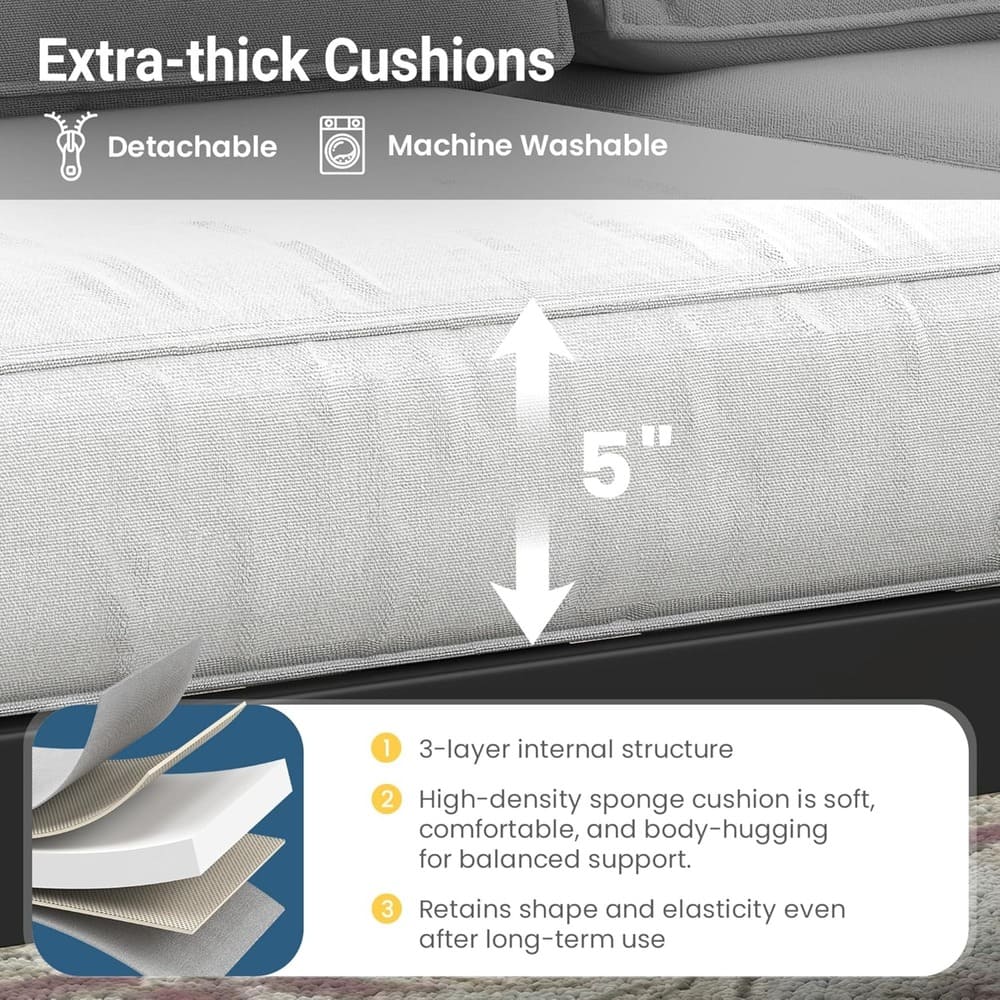 • • Luxurious 5-Inch High-Density Foam Cushions Thick 5" high-density foam cushions provide plush, sag-resistant comfort that molds to your body. 260G deluxe Olefin fabric is soft, skin-friendly, fade-resistant (color fastness 5), and water-repellent – vibrant beige stays beautiful year-round.