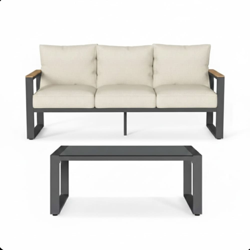 • Elevate your outdoor living with this premium 2-piece all-weather aluminum patio set, featuring a spacious 75" 3-seat sofa and matching 44" rectangular coffee table with tempered glass top in sleek gray tones. Perfect for balconies, gardens, decks, backyards, porches, patios, or poolside areas, this contemporary conversation set combines modern sophistication, superior comfort, and exceptional durability for year-round enjoyment.