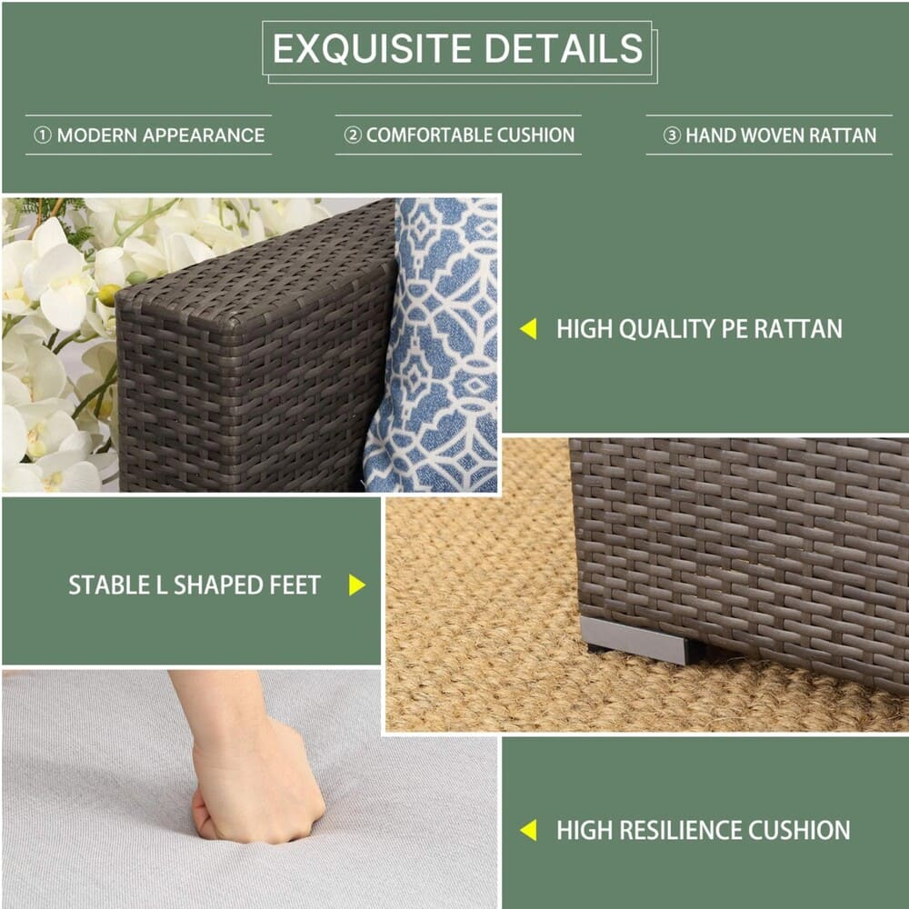 • Create an instant cozy outdoor retreat with this compact 2-piece wicker patio conversation set – featuring one armless sofa and one matching coffee table with tempered glass top. Perfectly sized for small patios, balconies, decks, or poolside nooks. Built on a rust-proof galvanized steel frame and hand-woven with premium UV-resistant PE rattan, this all-weather set stays beautiful year-round without cracking, fading, or peeling.