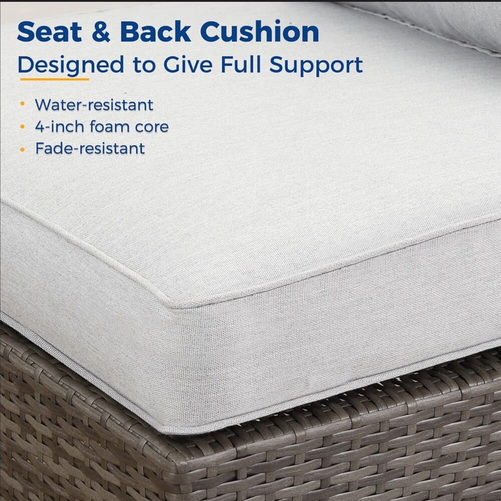 • • Upgraded 4-Inch-Thick Olefin Cushions with Machine-Washable Covers: Plush 4" high-resiliency sponge cushions wrapped in solution-dyed Olefin fabric provide luxurious comfort. Fade-resistant, water-repellent, and equipped with smooth zippers for quick removal and machine washing – the easiest outdoor upkeep possible.