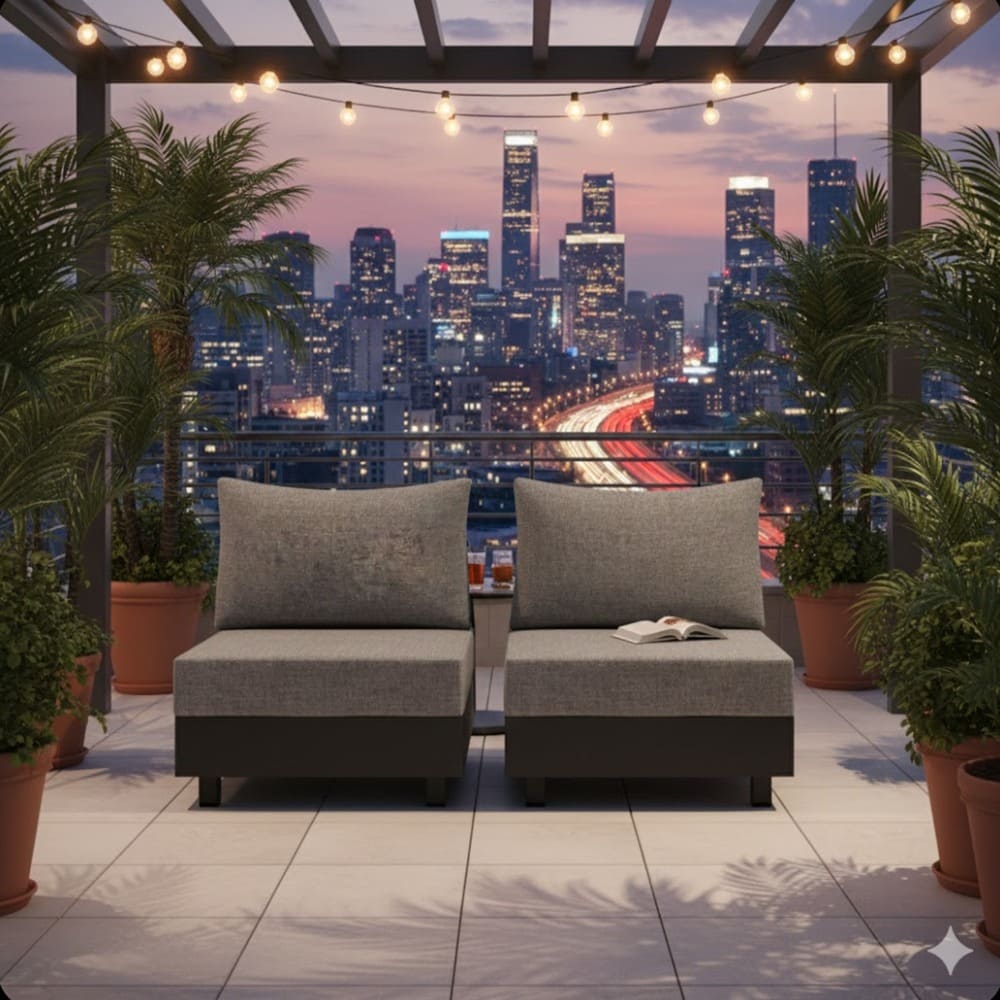 • Product Highlights: • Fully Modular & Reconfigurable Design Two armless chairs with connector clips allow endless arrangements – L-shape, U-shape, or separate pieces. Customize for intimate gatherings, large parties, or small spaces – ultimate flexibility for any patio or balcony layout.