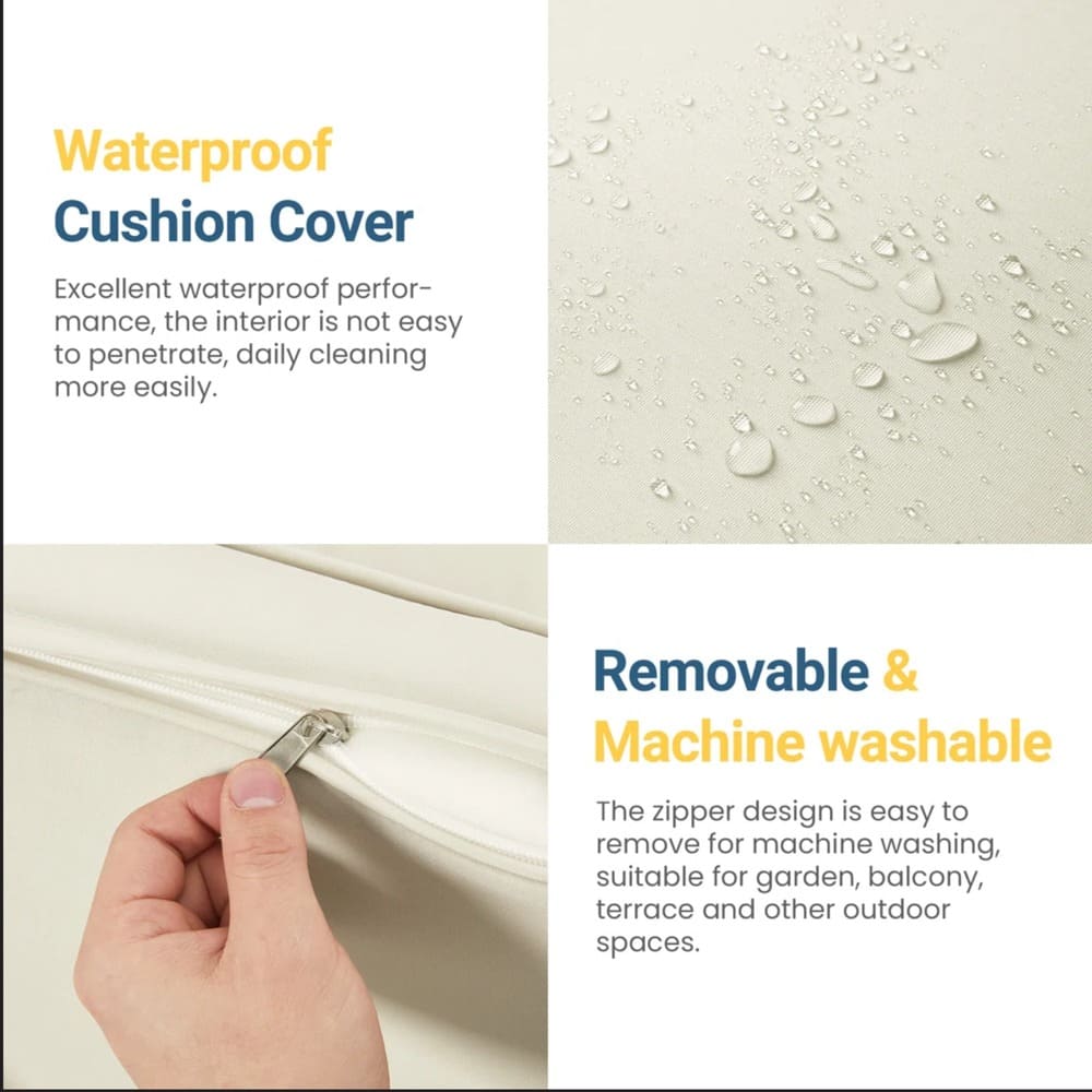 • • Plush Beige Cushions with Removable Covers: Thick high-density foam cushions in fade-resistant 180gsm polyester offer superior comfort and support. Zippered covers remove easily for machine washing – keep seating fresh and inviting all season long. • Space-Saving L-Shaped Modular Design: Chaise lounge + 2-seater sofa create a cozy L-shape perfect for corners, balconies, or small patios. Flexible layout maximizes relaxation in tight spaces while delivering modern wicker style and function.