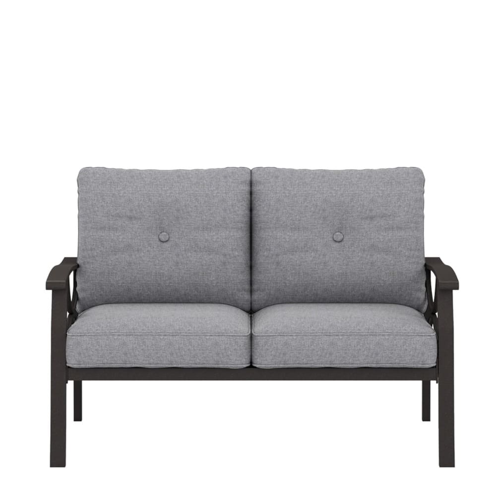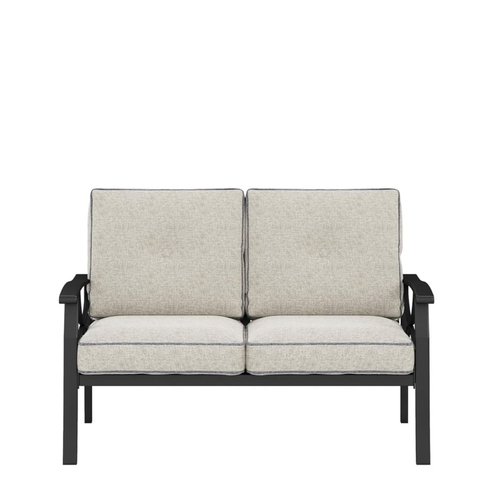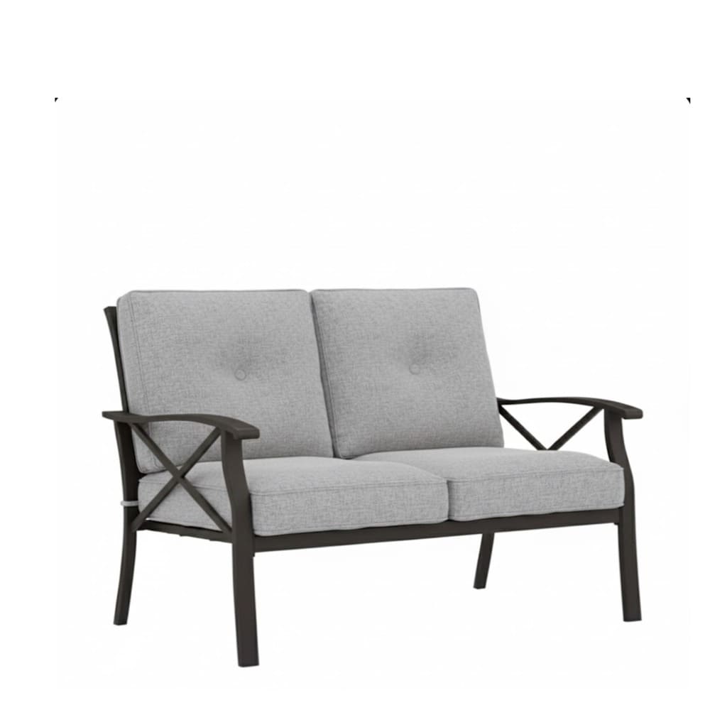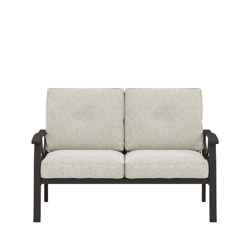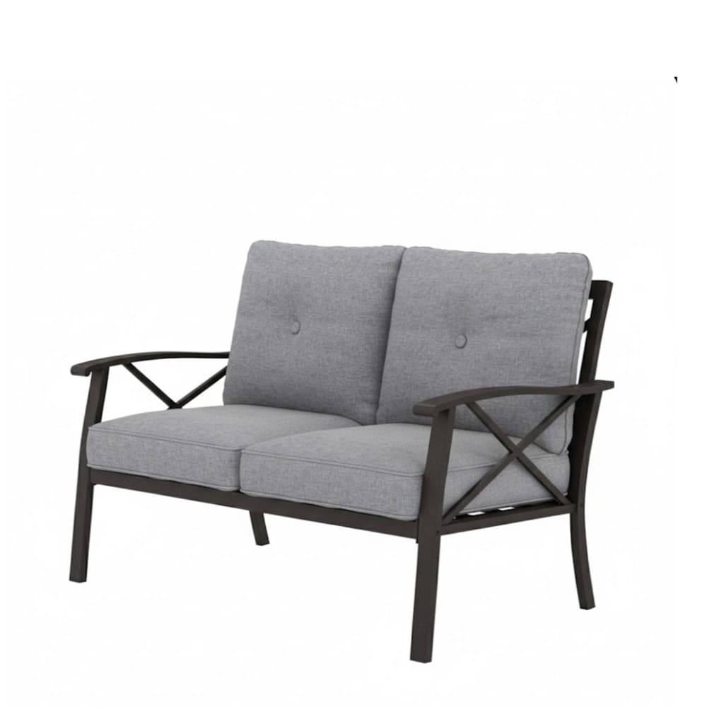 48" All-Weather Metal Loveseat 2 Seats Couch Sofa with Gray/Beige/Khaki Cushions with black Frame