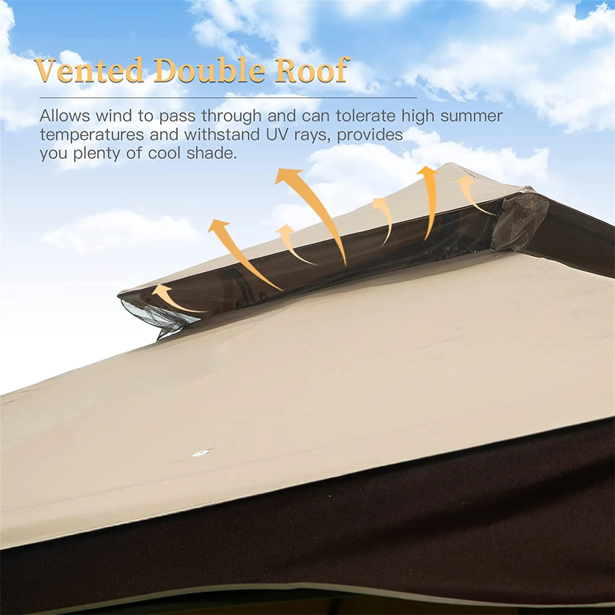 Aetherdome 10x13 FT Outdoor Gazebo with Double Roof & Mosquito Net Khaki