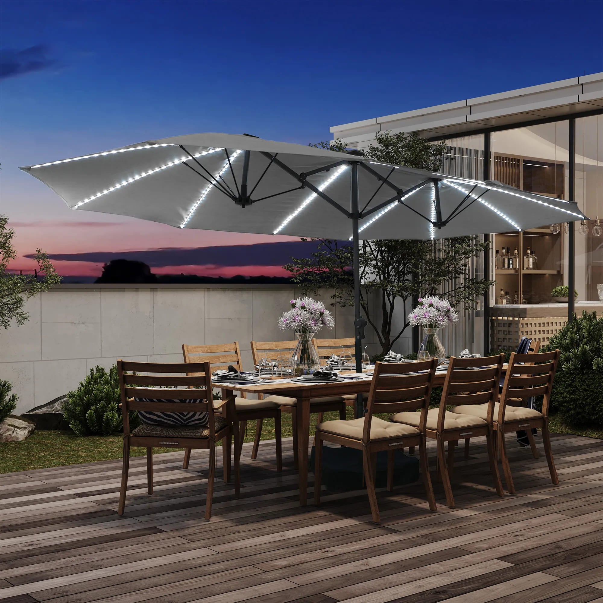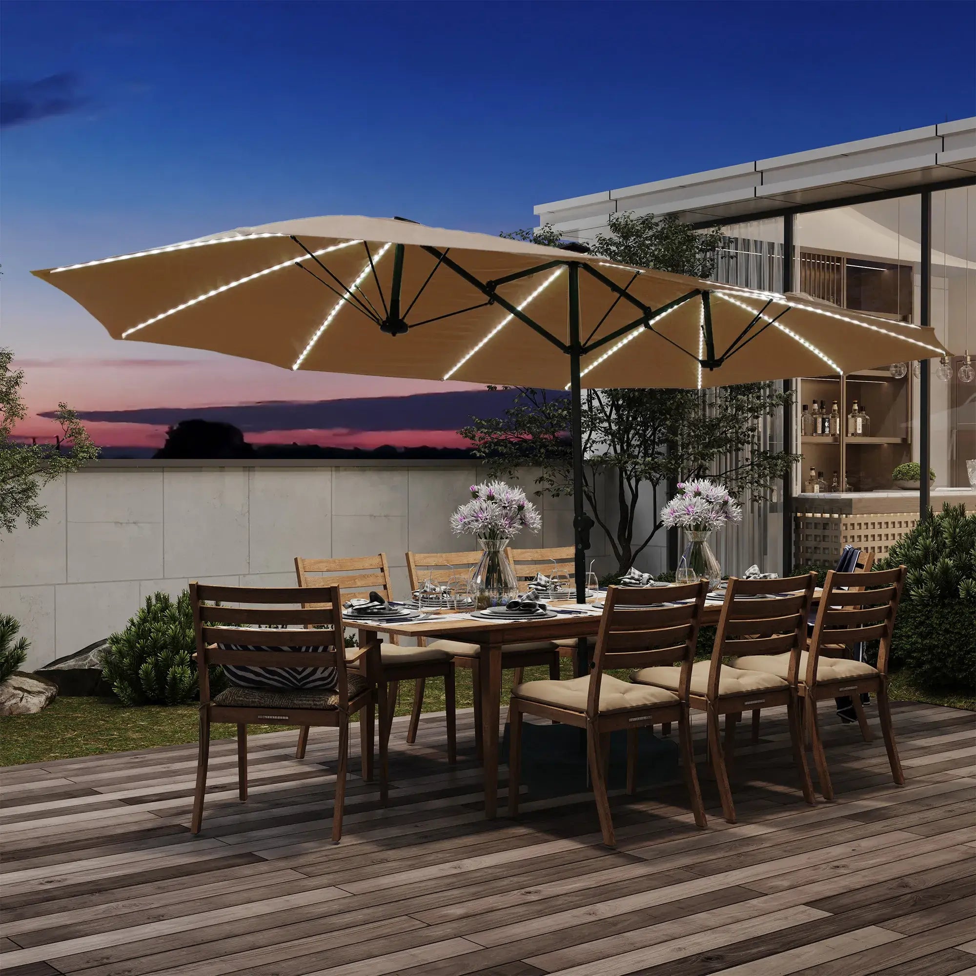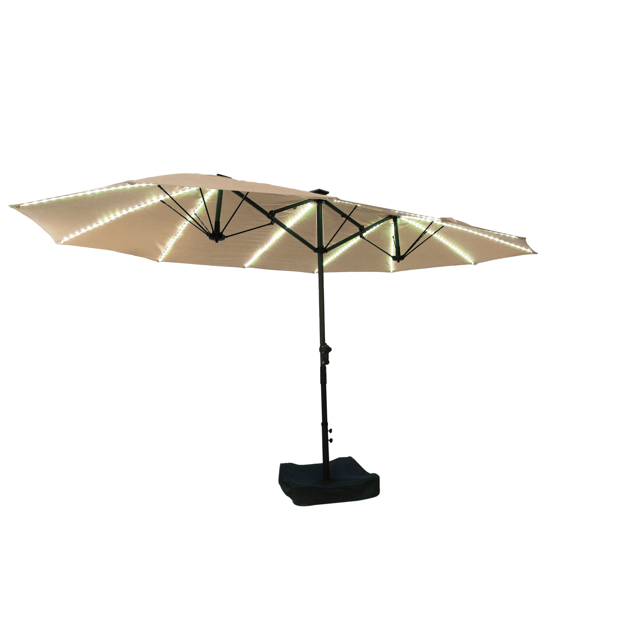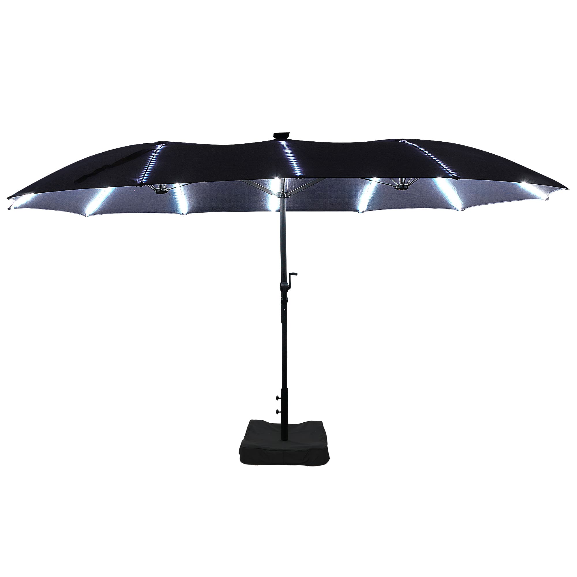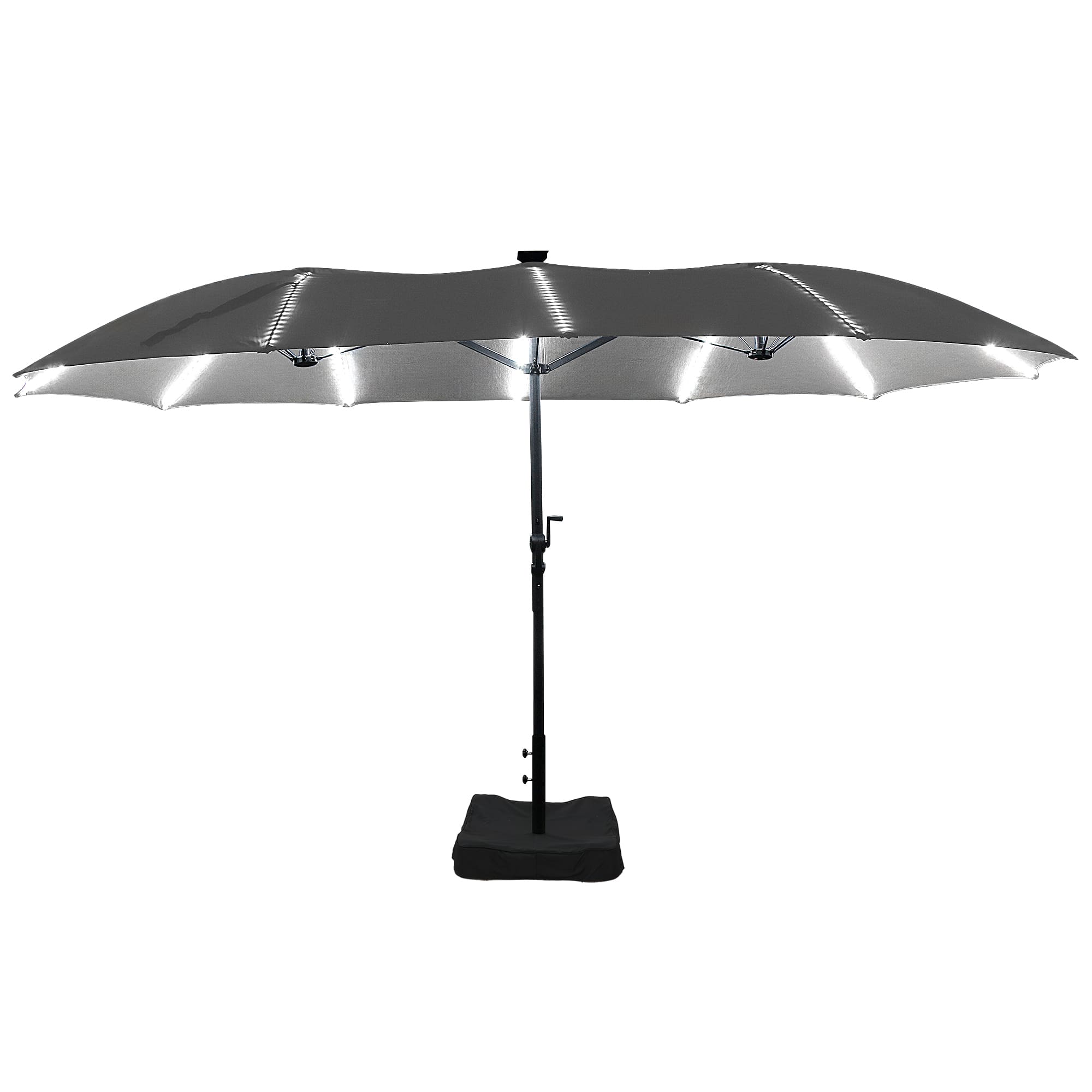Rectangular Dual-Sided Patio Fiberglass Ribs Umbrella with LED Lights 15 FT