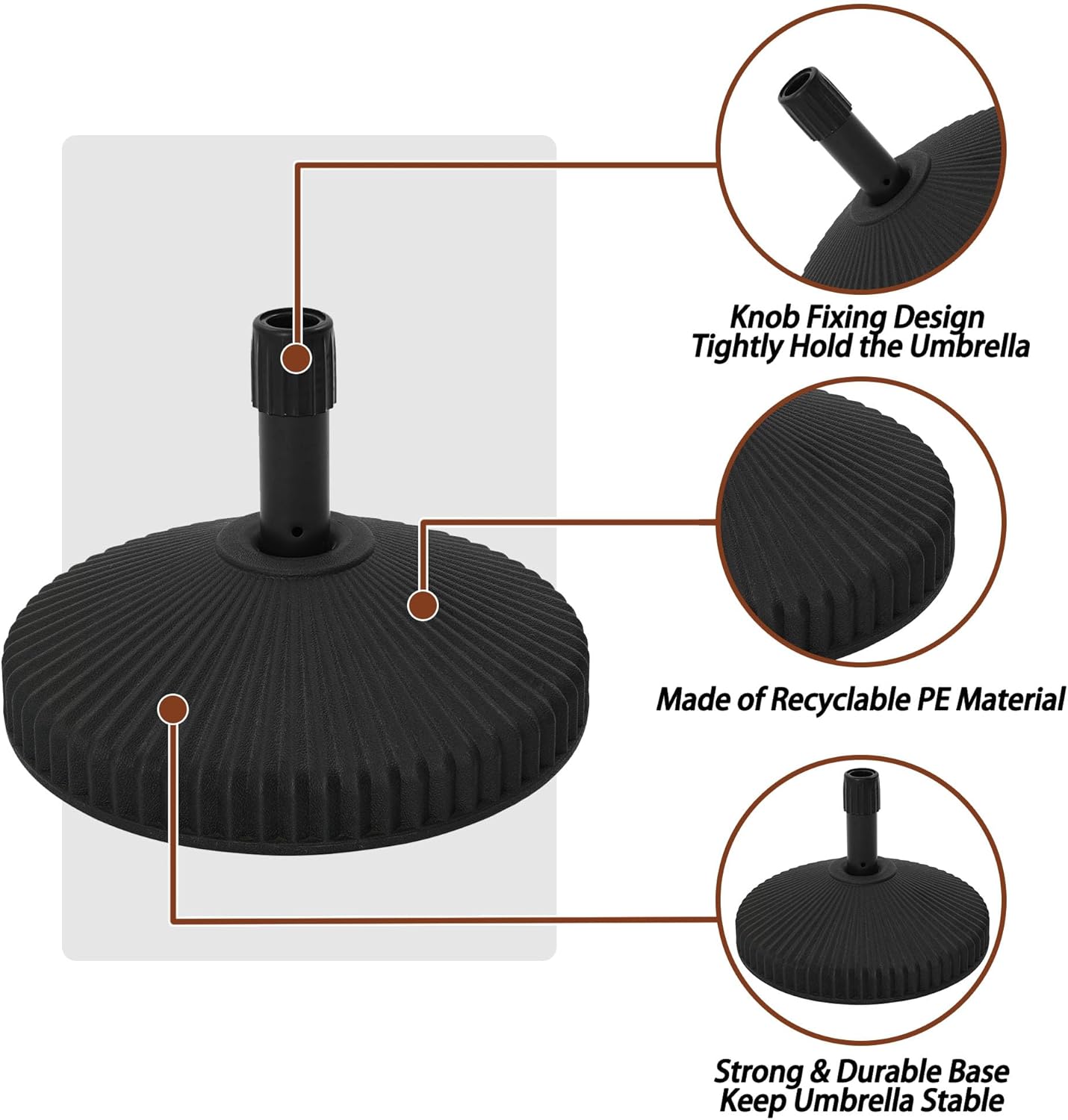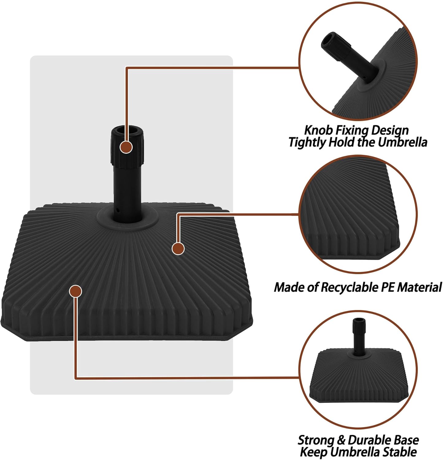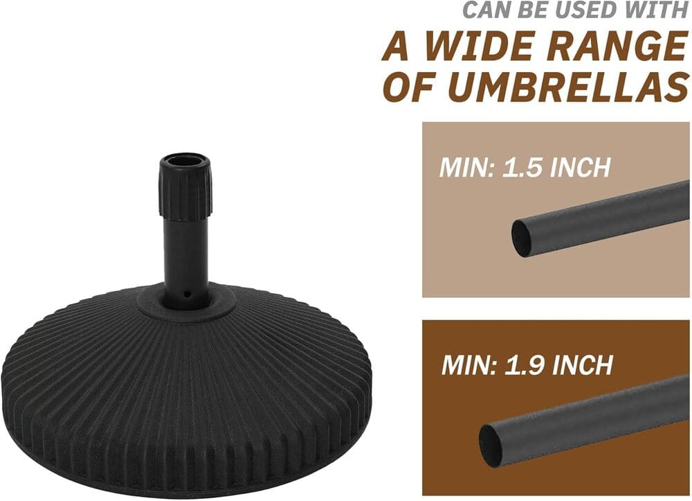 • Base fits umbrella poles from 1.5 in. to 1.9 in. Dia