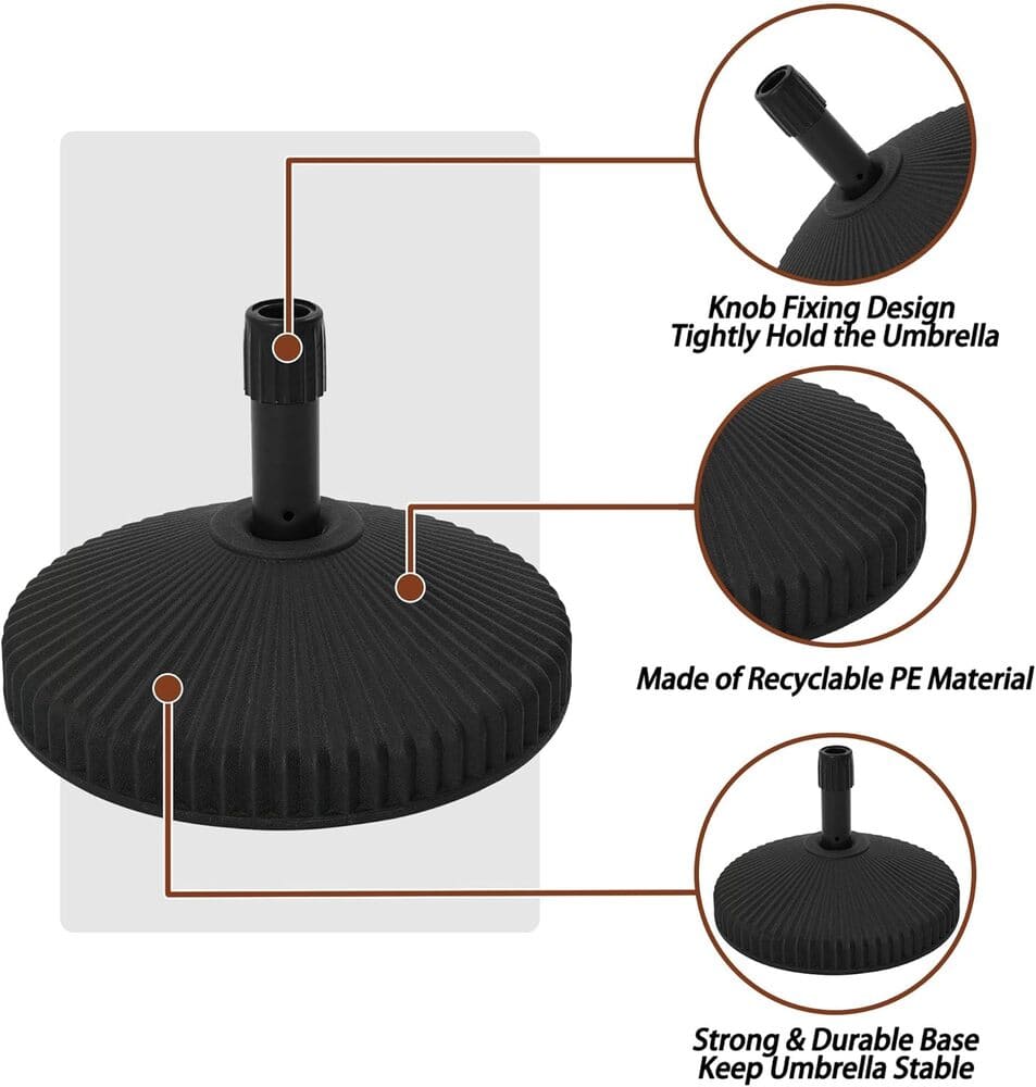 • Umbrella base can be used independently or put together with your patio table